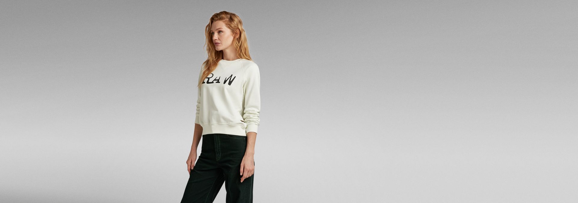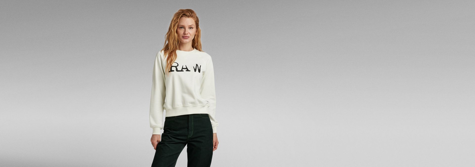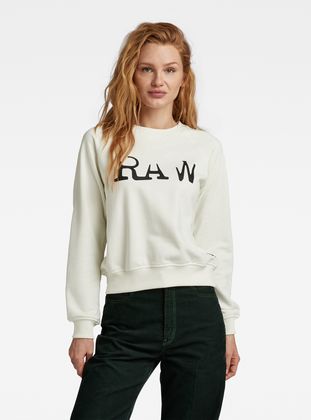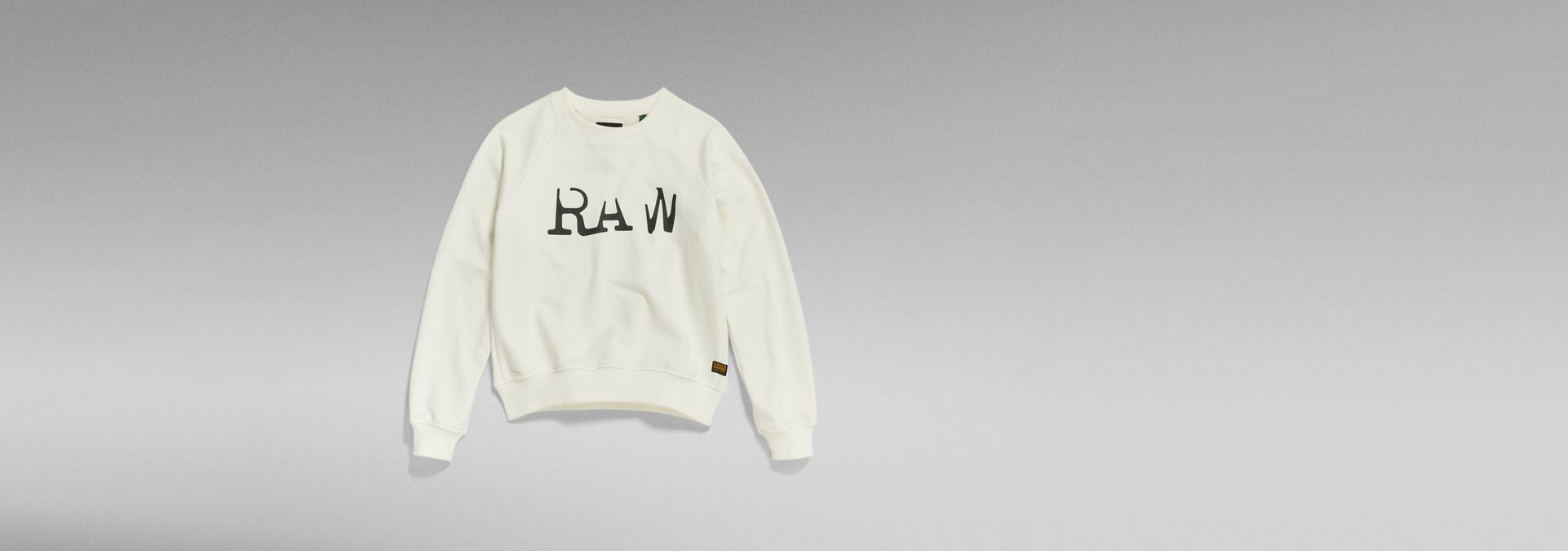 Sweater RAW Graphic features a straight fit with a rounded neckline and a triangle inset piece. Also the cuffs and waist are created out of a ribbed knit. The graphic print at the chest completes it.