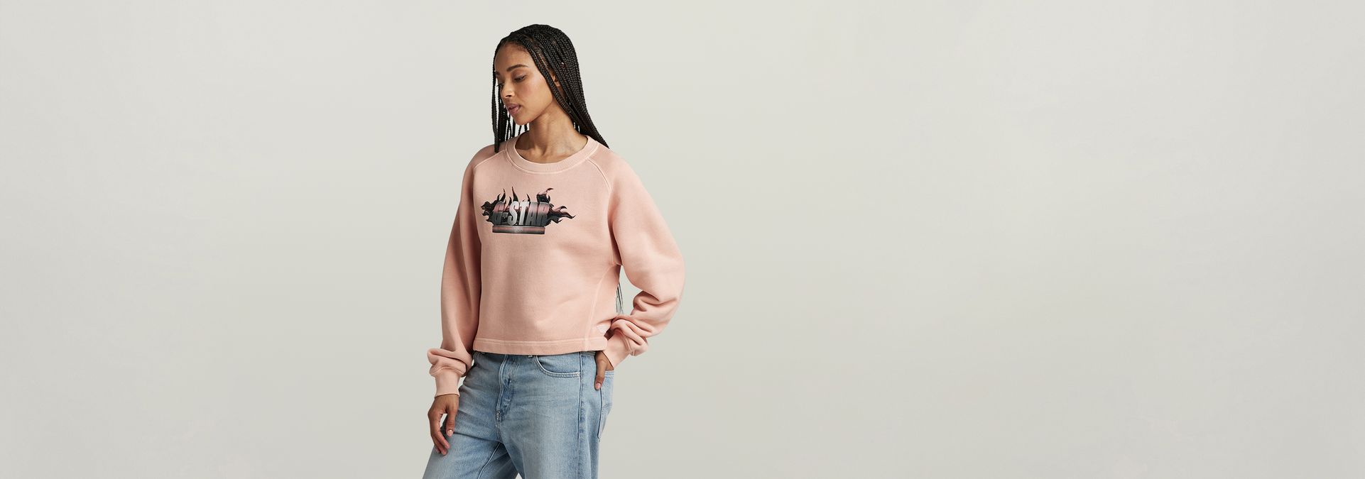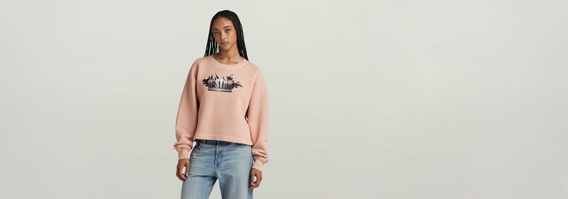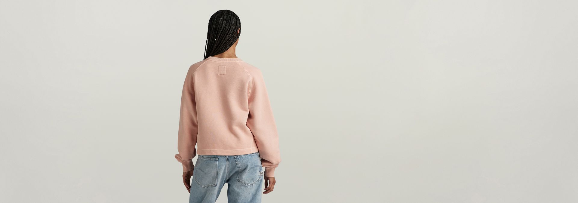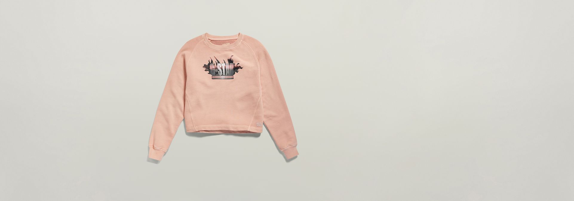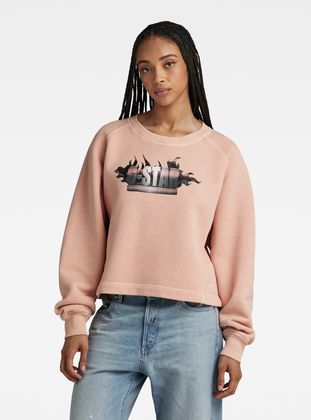 Sweater Overdyed Merch is cut in a shorter length and offers a loose fit. A graphic print is added to the front.