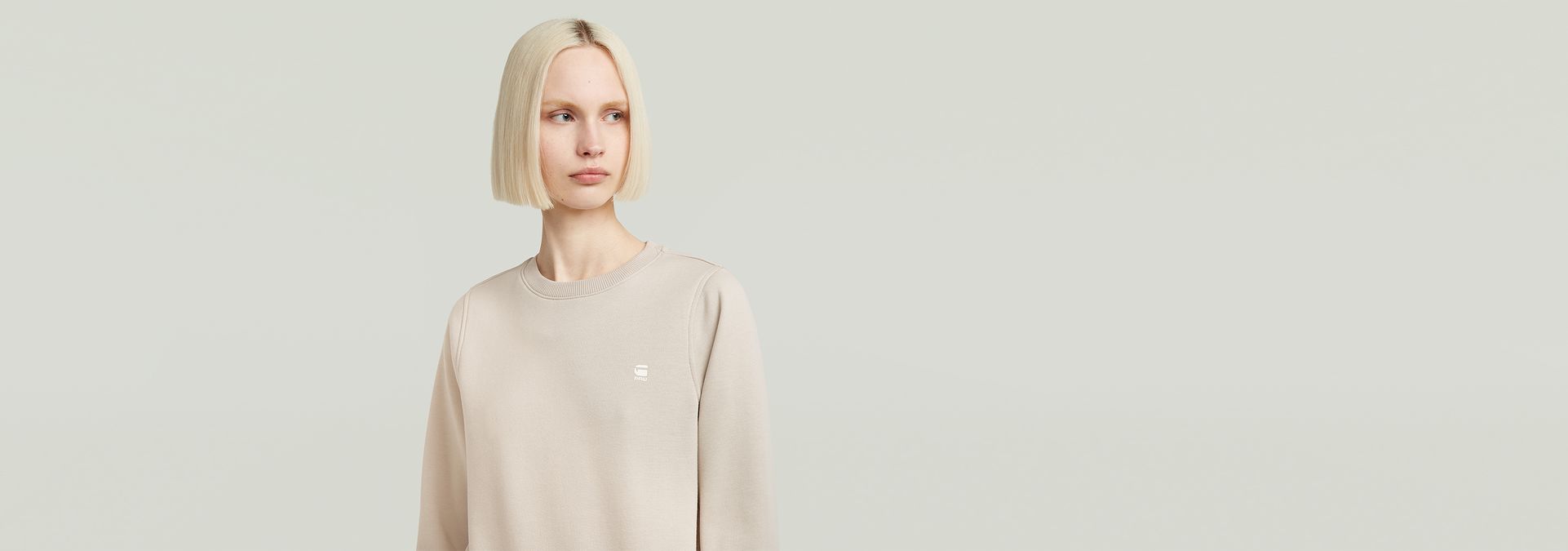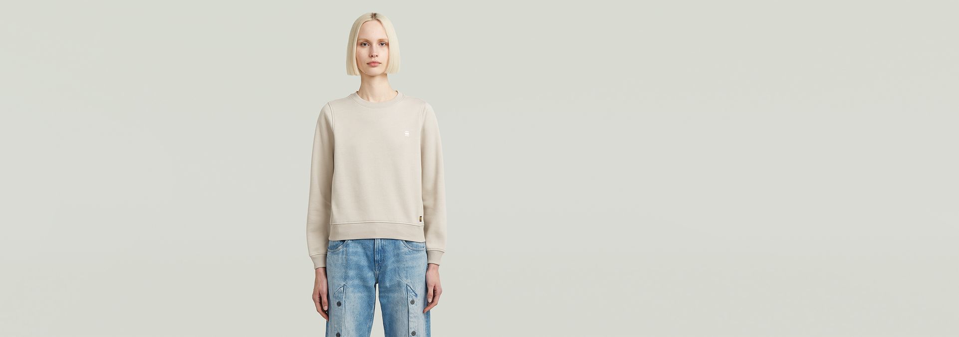 Crew sweater Logo is one of the graphic sweaters we've developed. This version offers a shorter length and shows a G-STAR print at the chest.