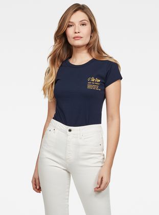 T-shirt Rei is one of our organic cotton graphic T-shirts. This version features a printed RAW graphic at the chest. A rounded neckline and a slim fit offer a feminine look. Our G-Star RAW woven label is set at the side seam to sign it off.