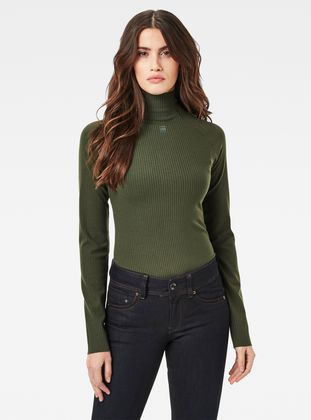 A raised mock neck is created by extending the front panel of this Rib Mock top. The slim cut raglan sleeves are cut slightly longer to make this style complete.
