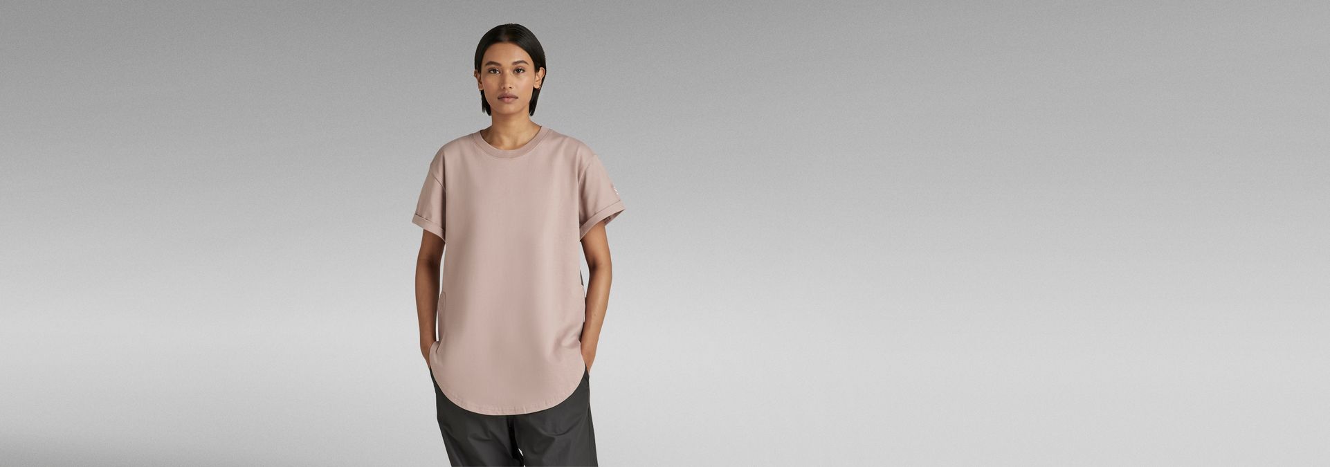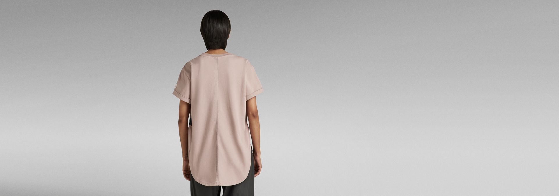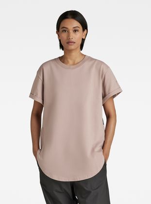 T-Shirt Long Slit is designed in a loose fit and offers an extended length. The short sleeves show a fold over edge, fixated by a small stitch. Deep side slits and a curved hem complete it.