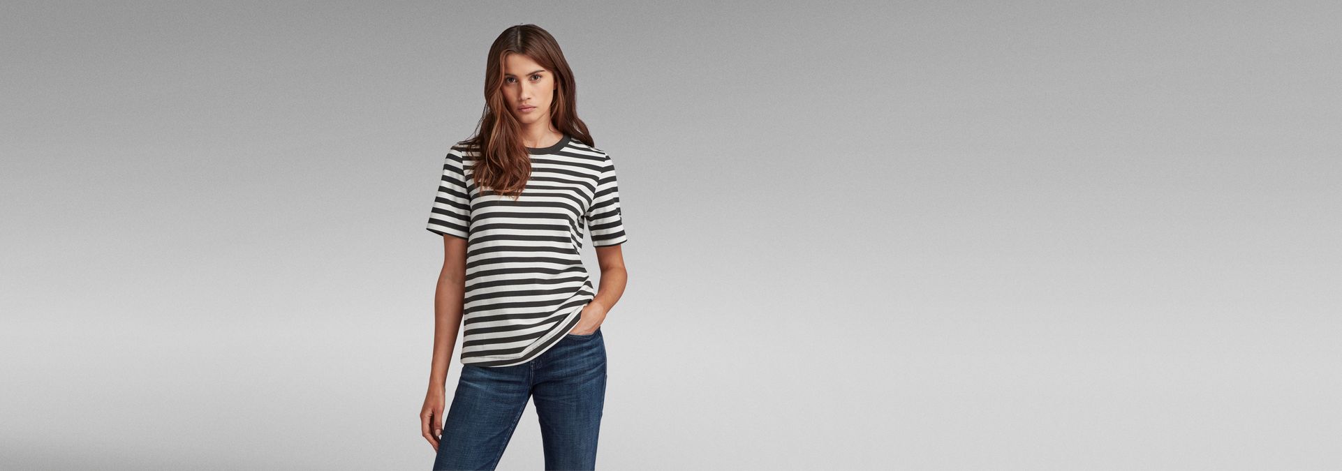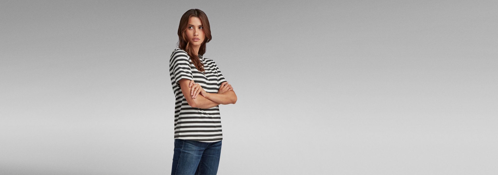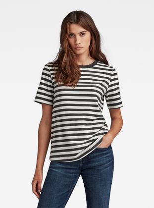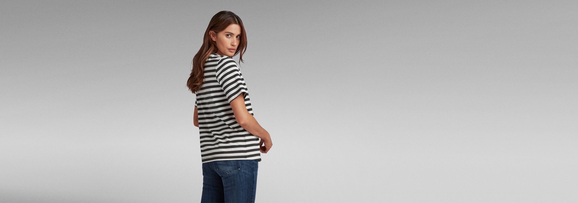 This organic cotton T-Shirt offers a straight fit, where the horizontal stripe repeat is created by yarn dye.