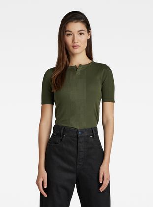 Short sleeved T-Shirt Granddad is designed in a slim fit and offers a round neckline with an open placket.