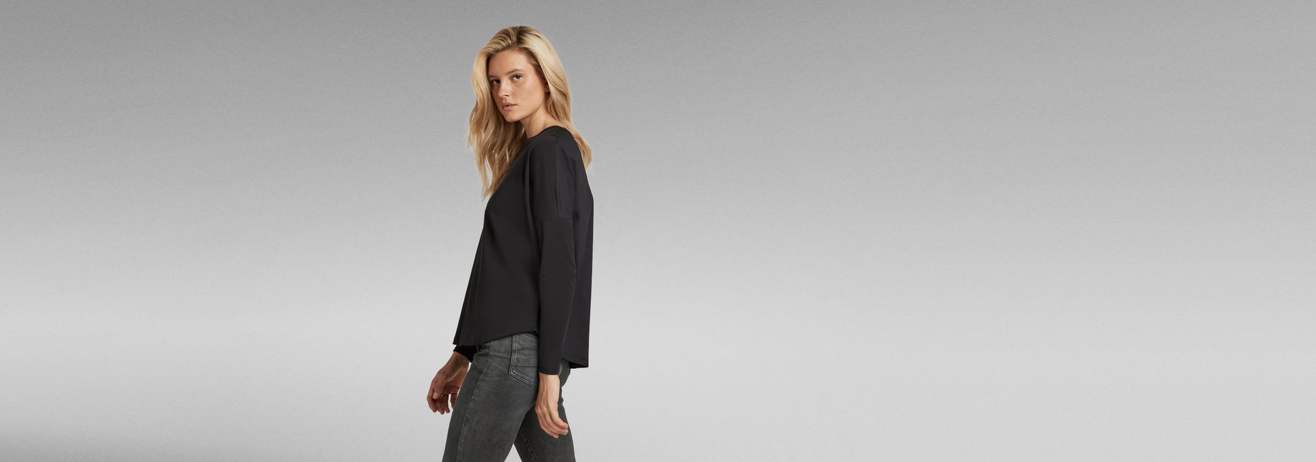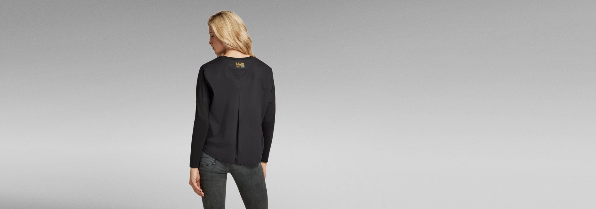 Top Woven Mix is cut in a loose fit. Comfortably designed with dropped shoulders and a fine ribbed neckline. This top offers a GS RAW graphic print at the backside of the sleeve. The upper back panel hides a deep pleat just below, offering a widened fit.