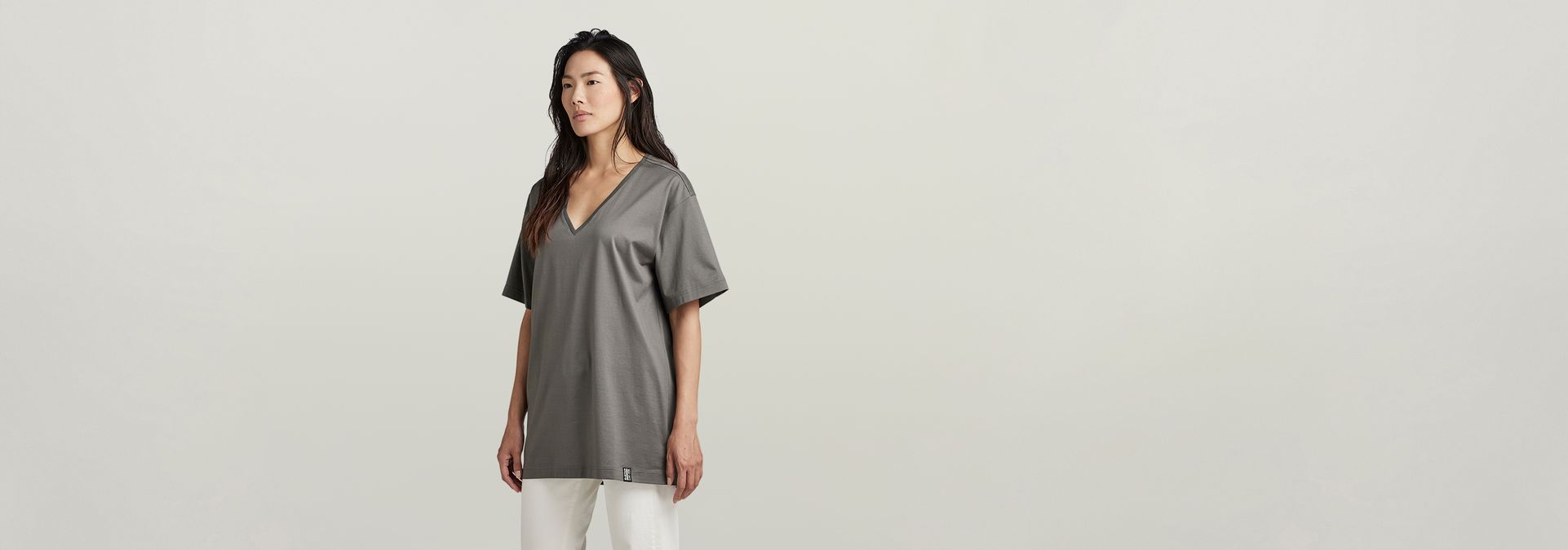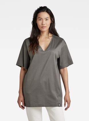 Essential T-Shirt Deep V-Neck is designed in a loose fit. This relaxed T-shirt offers semi short sleeves. The wide V-neck is finished with a slim binding.