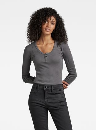 Superslim body top Henley offers a round neck and a placket with buttons. Combined with a 2-piece snap button closure at the bottom, an easy entrance is created. The vertical back seam adds to a snug fit.