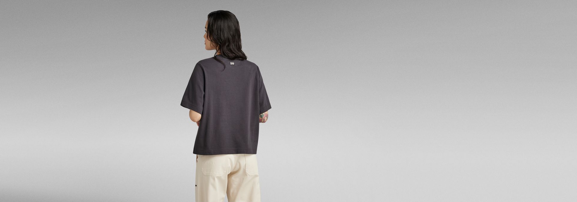 Boxy T-shirt Lookbook Print is designed in a straight fit. A squared, boxy silhouette is created. This tee shows a graphic print at the front. The ribbed neckline completes it.