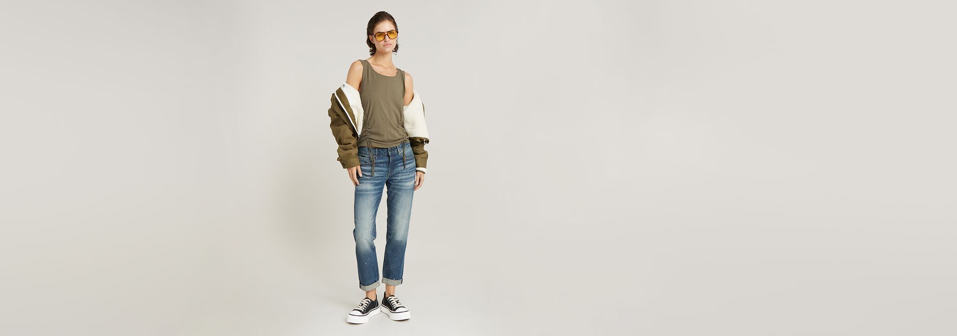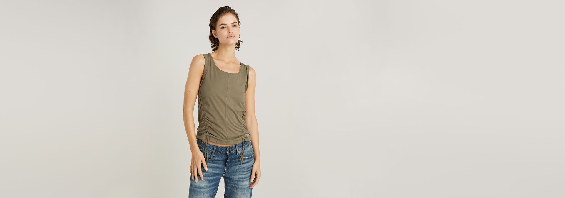 Sleeveless top Adjustable Tucked Sleeve offers a curved hem. The tunnel detailing at the front allows for a shorter length with a gathered effect.