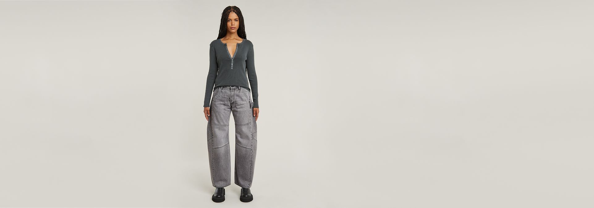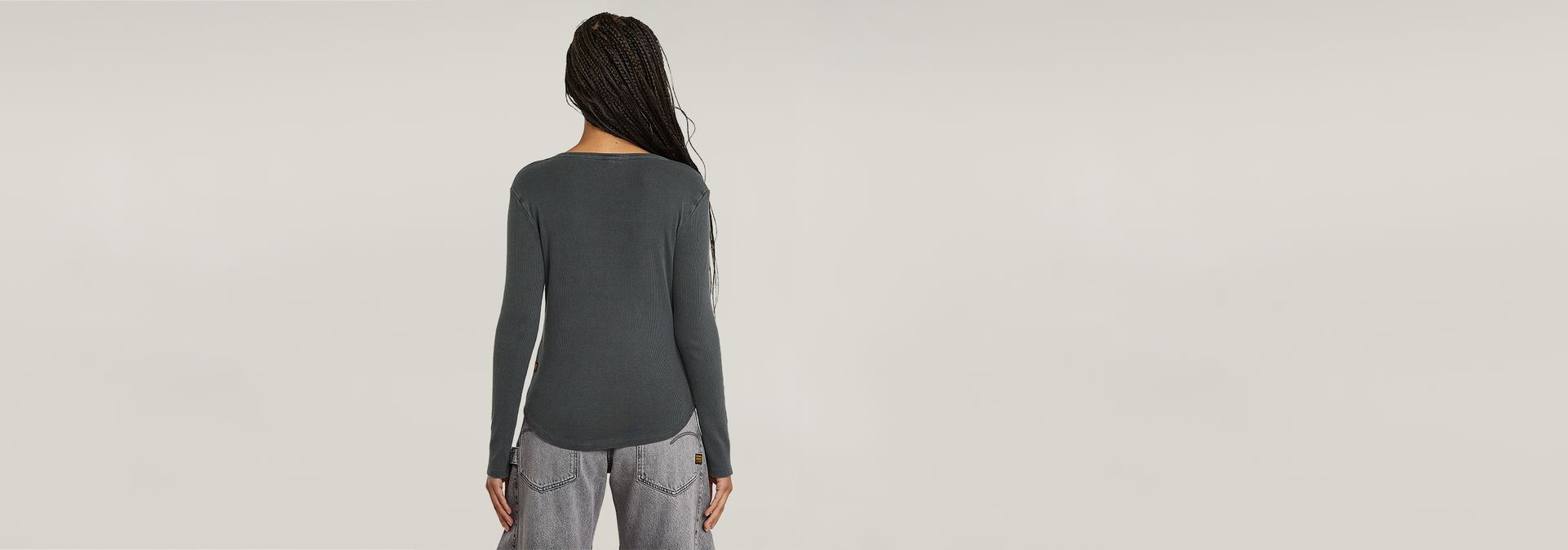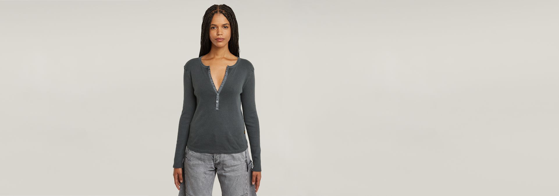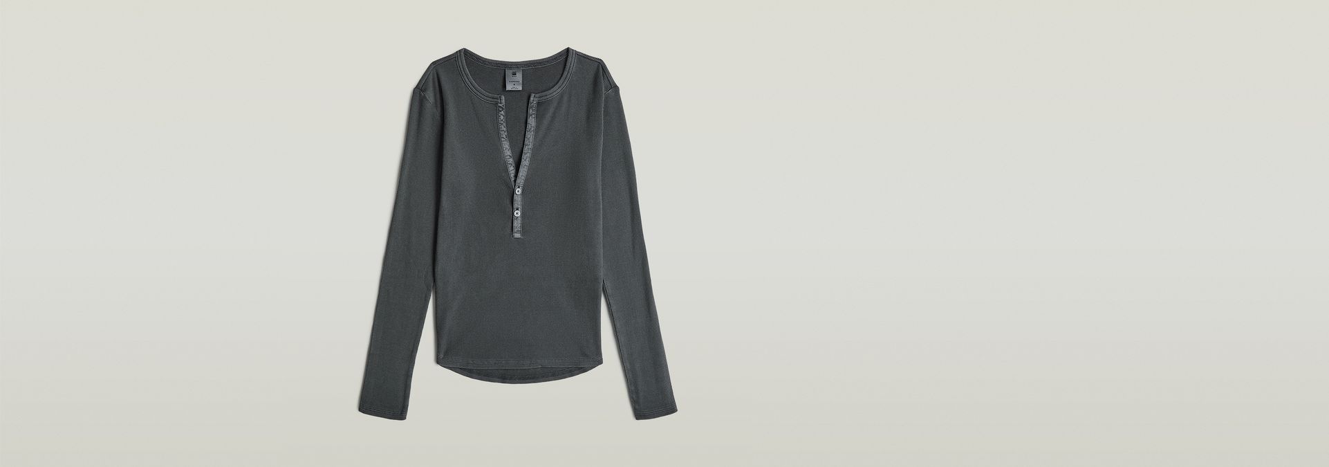 The Deep Slim top features a deep V-neck and button closure. Designed in a slim fit with long sleeves.