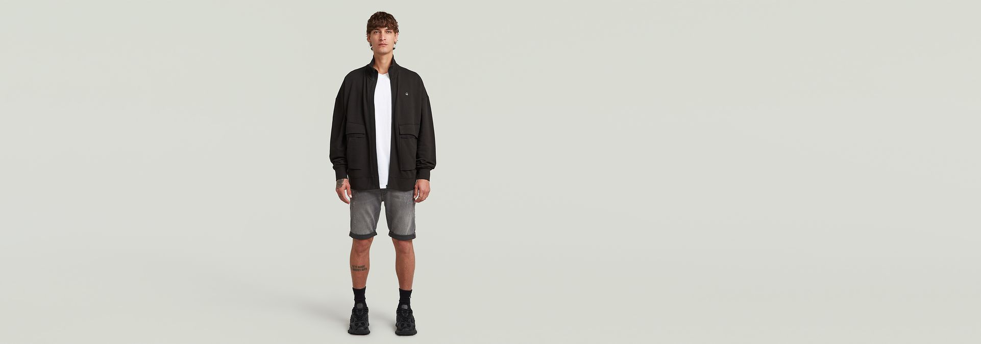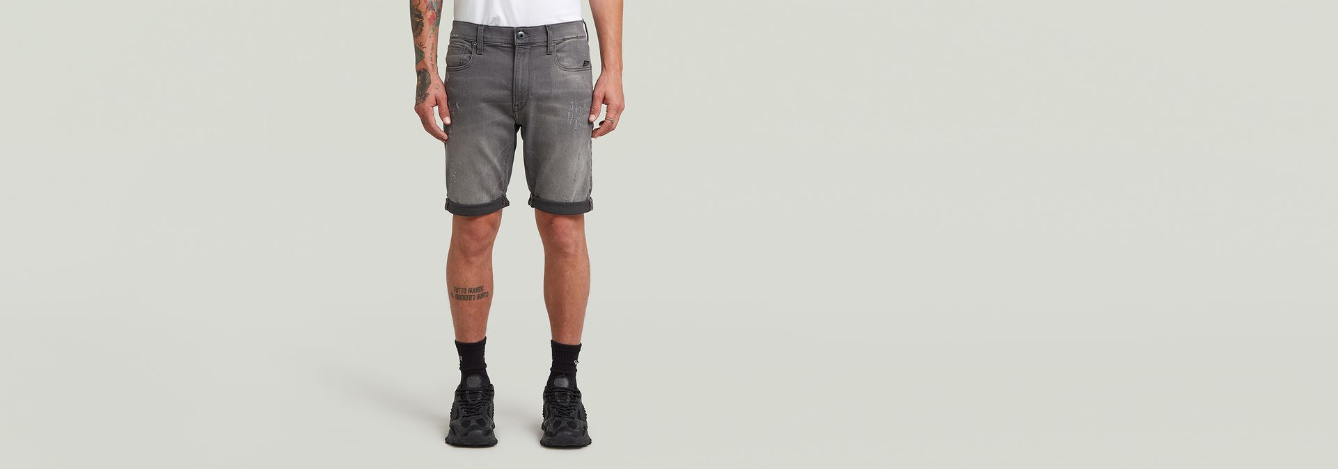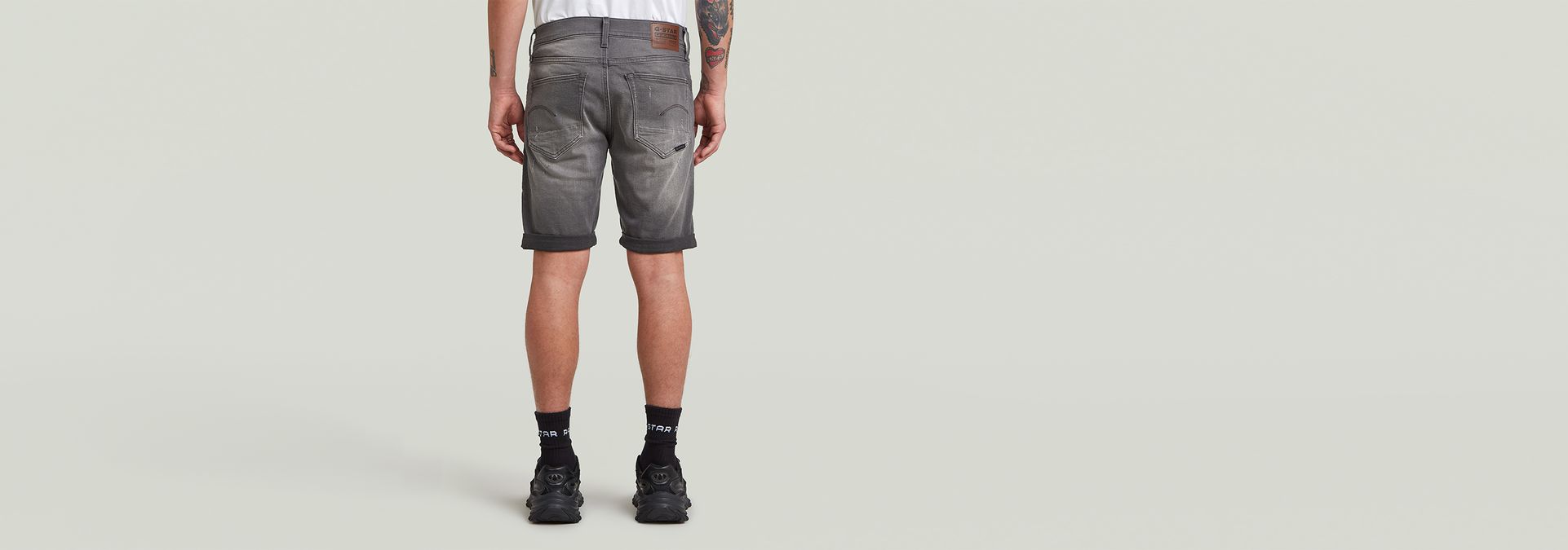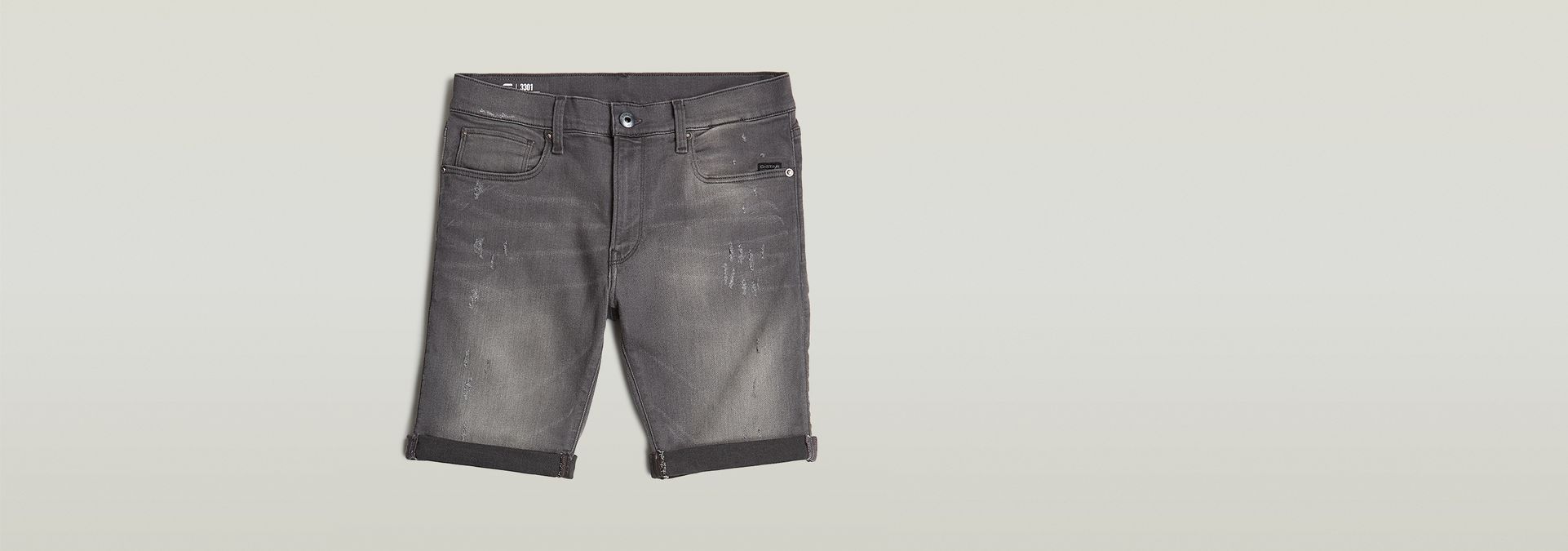 El modelo 3301 Slim 1/2-Length Shorts está confeccionado en denim gris compacto con una elasticidad superior y un estilo rígido clásico.