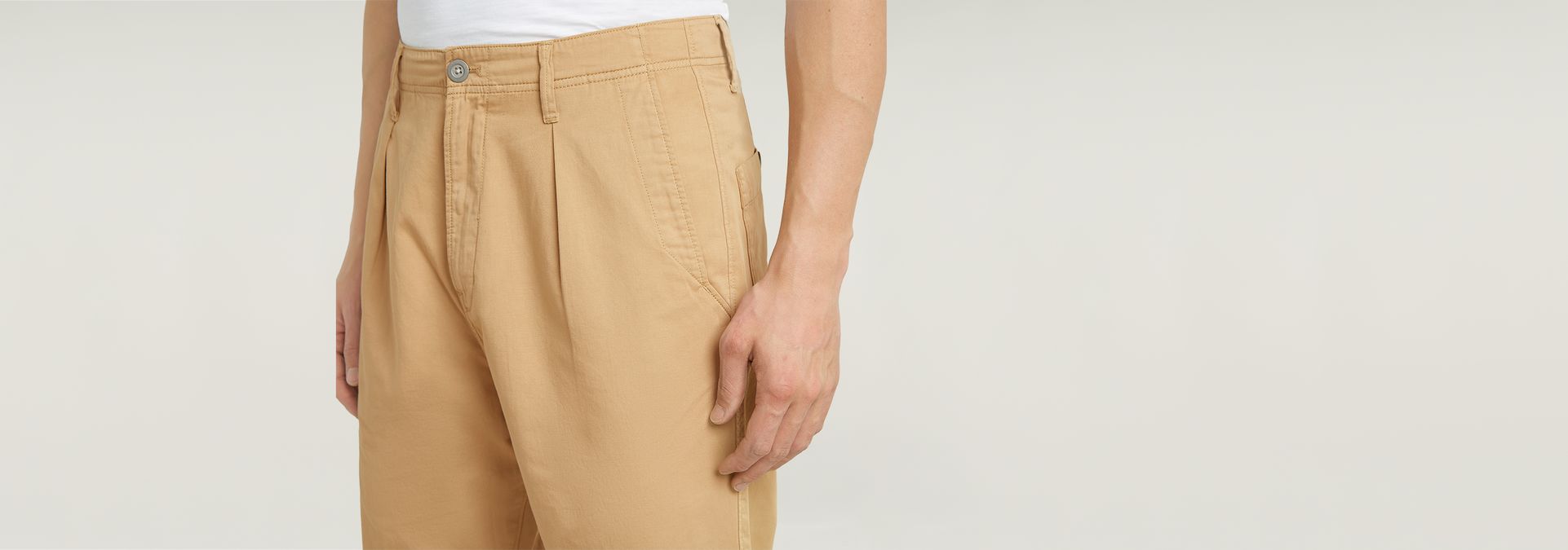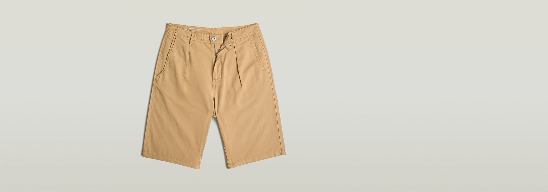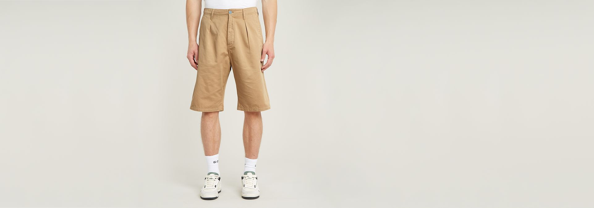 El pantalón corto chino plisado está diseñado con un corte relajado y cintura media.