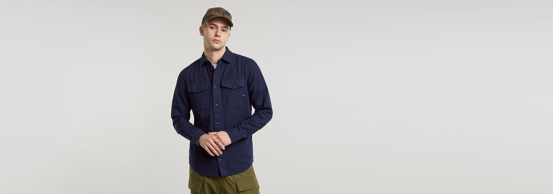 La camisa Marine tiene un corte ajustado y el bajo redondeado. Los bolsillos con solapa en el pecho rematan el modelo.