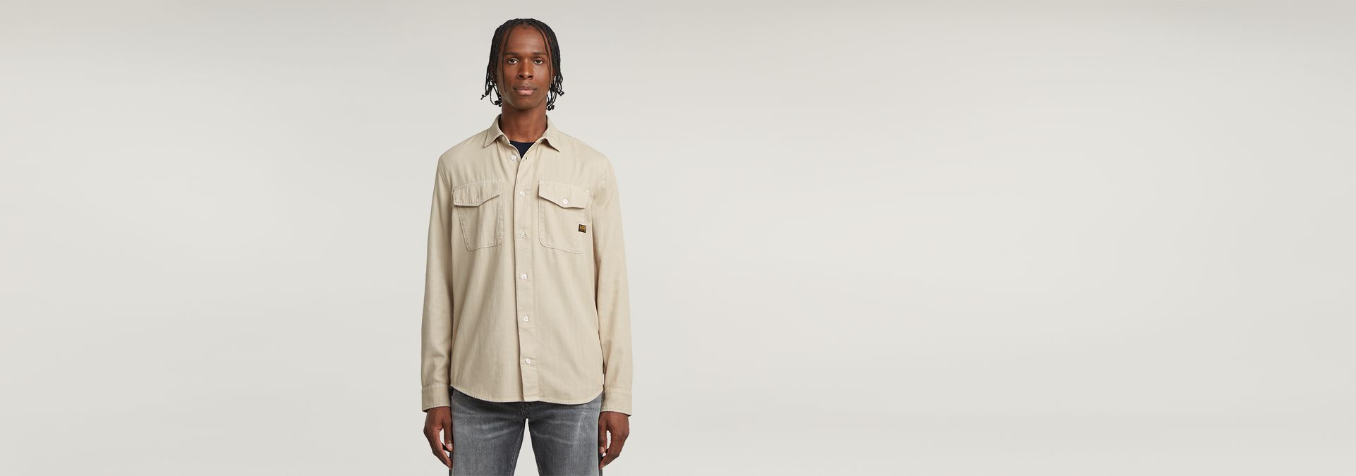 La camisa Marine tiene un corte ajustado y el bajo redondeado. Los bolsillos con solapa en el pecho rematan el modelo.