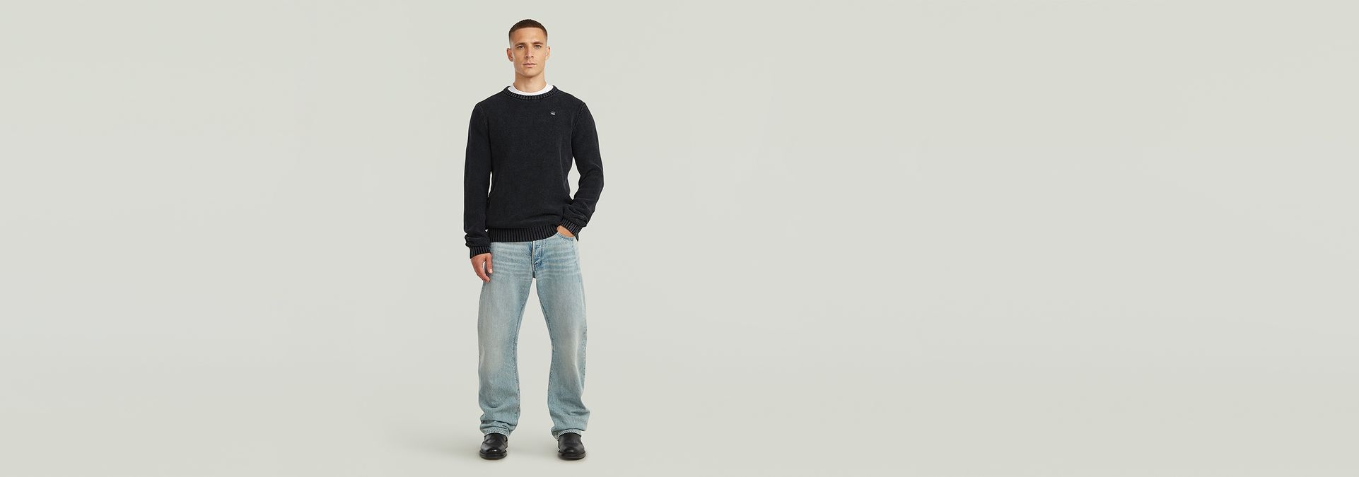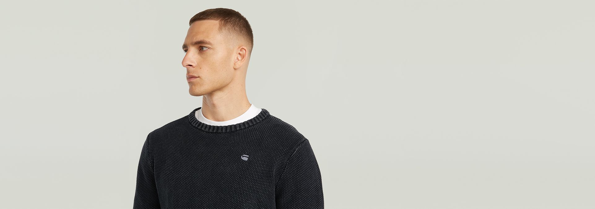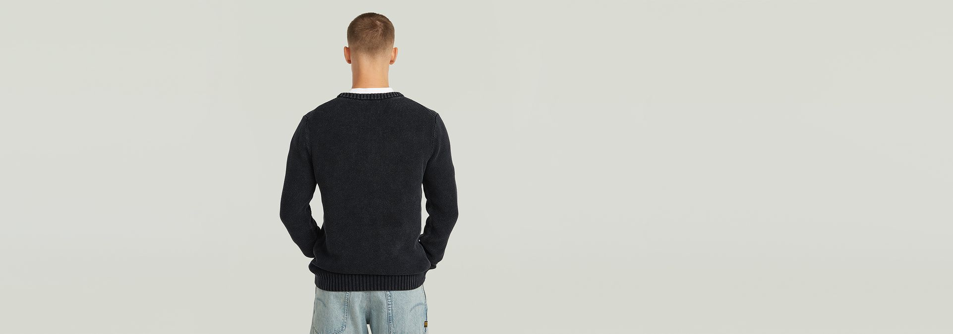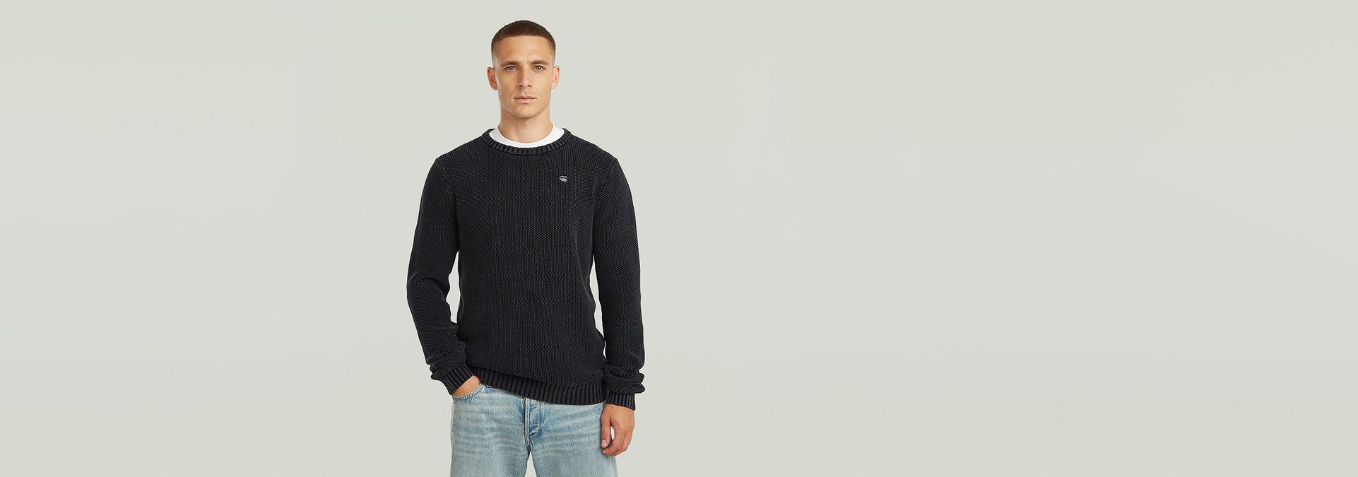 El suéter de punto Garment Dyed Structure tiene corte regular con cuello redondo y mangas largas. Este suéter de punto está diseñado para ofrecer comodidad y estilo.