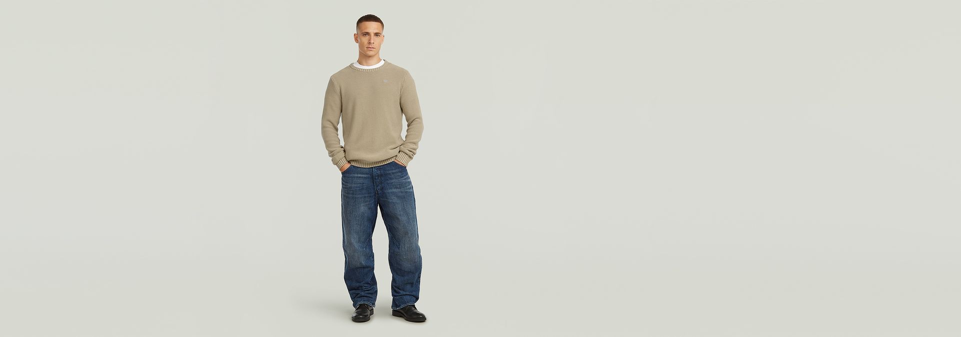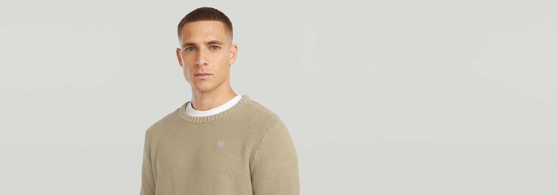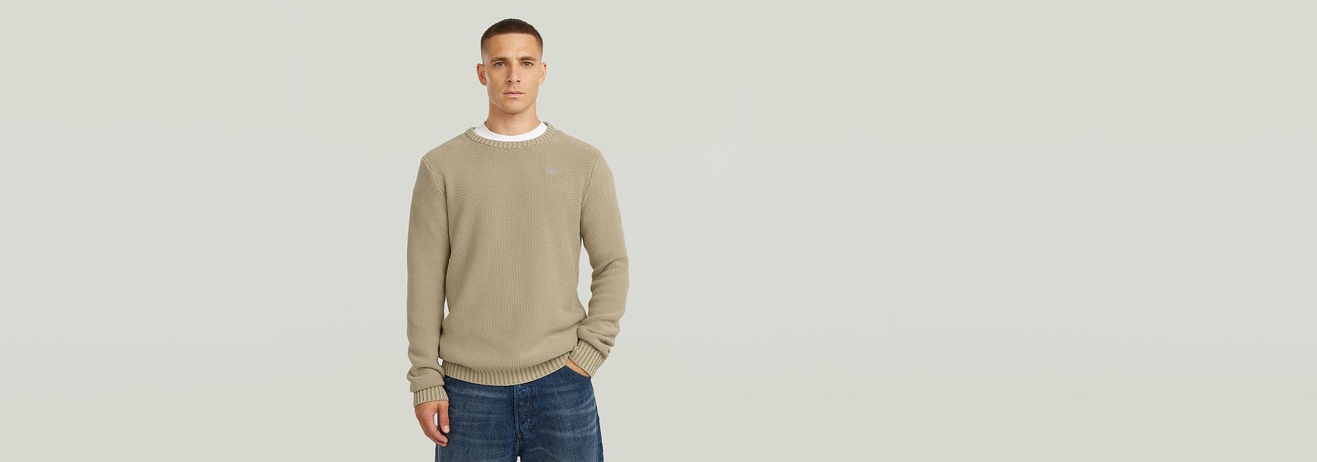 El suéter de punto Garment Dyed Structure tiene corte regular con cuello redondo y mangas largas. Este suéter de punto está diseñado para ofrecer comodidad y estilo.