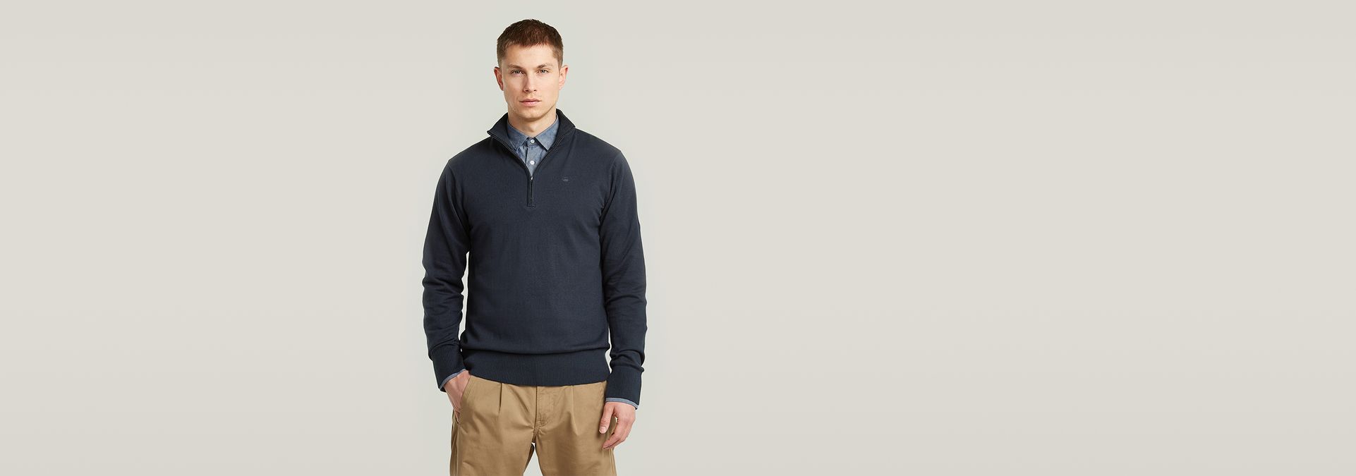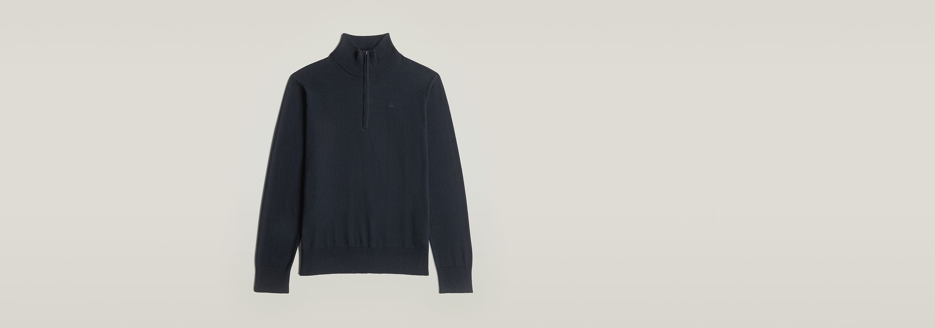 Los suéteres Olivier son parte de nuestra línea Correct. Está confeccionado para un ajuste regular con espacio adicional para capas. Incluye cuello alzado, cierre de media cremallera y puños y bajo en punto elástico acanalado.