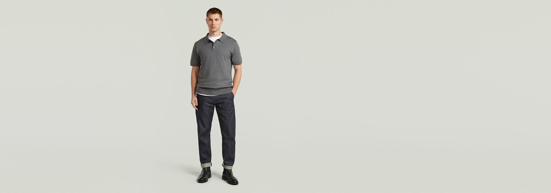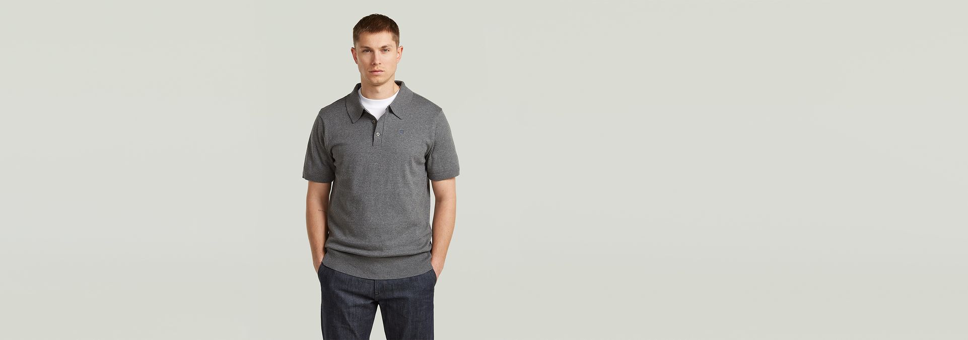El polo Willem de nuestra línea Correct está confeccionado con una mezcla de algodón ecológico y cachemir. Luce un corte ajustado con cuello de camisa clásico y cierre con botones.