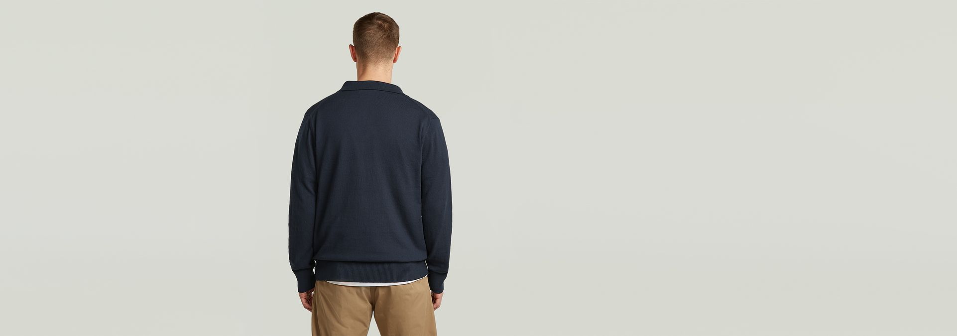 El polo Willem de manga larga de nuestra línea Correct está confeccionado con una mezcla pesada de algodón ecológico y cachemir. Presenta un corte recto con cuello estructurado, cierre de botones y puños de canalé.