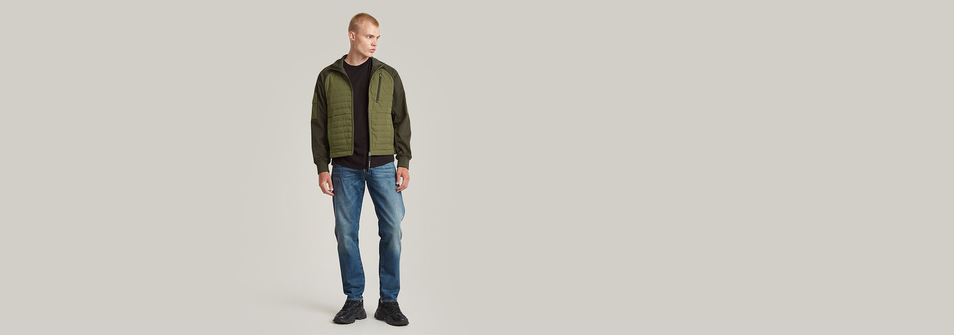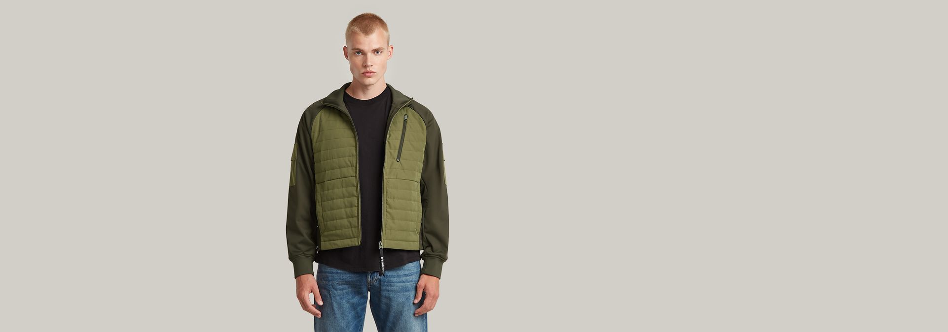 - Bolsillos en la parte superior de la manga, puños acanalados