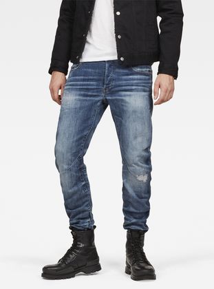 Los jeans Arc 3D, con una compleja confección que sigue los principios de diseño 3D de G-Star RAW, presentan costuras torcidas que crean un corte arqueado que envuelve la pierna. El resultado es un corte ajustado y cómodo que facilita el movimiento.