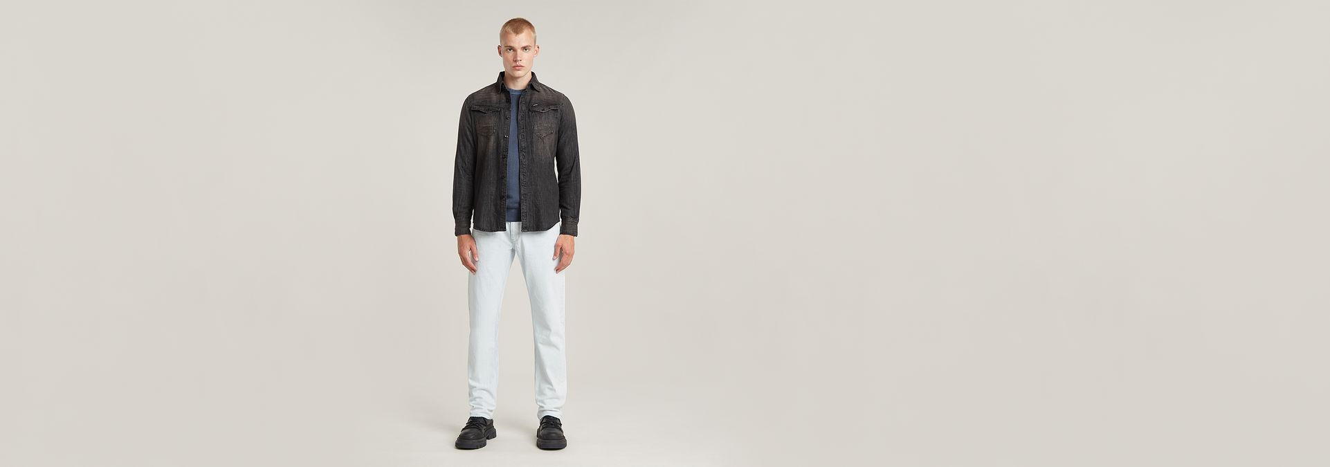 Todo un clásico. El Mosa, con un talle medio, cuenta con una construcción atemporal y una pierna estrecha. El bolsillo para monedas está recolocado hacia el interior y solo se ven los remaches.