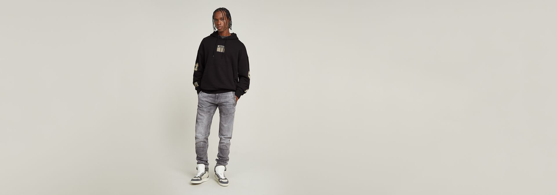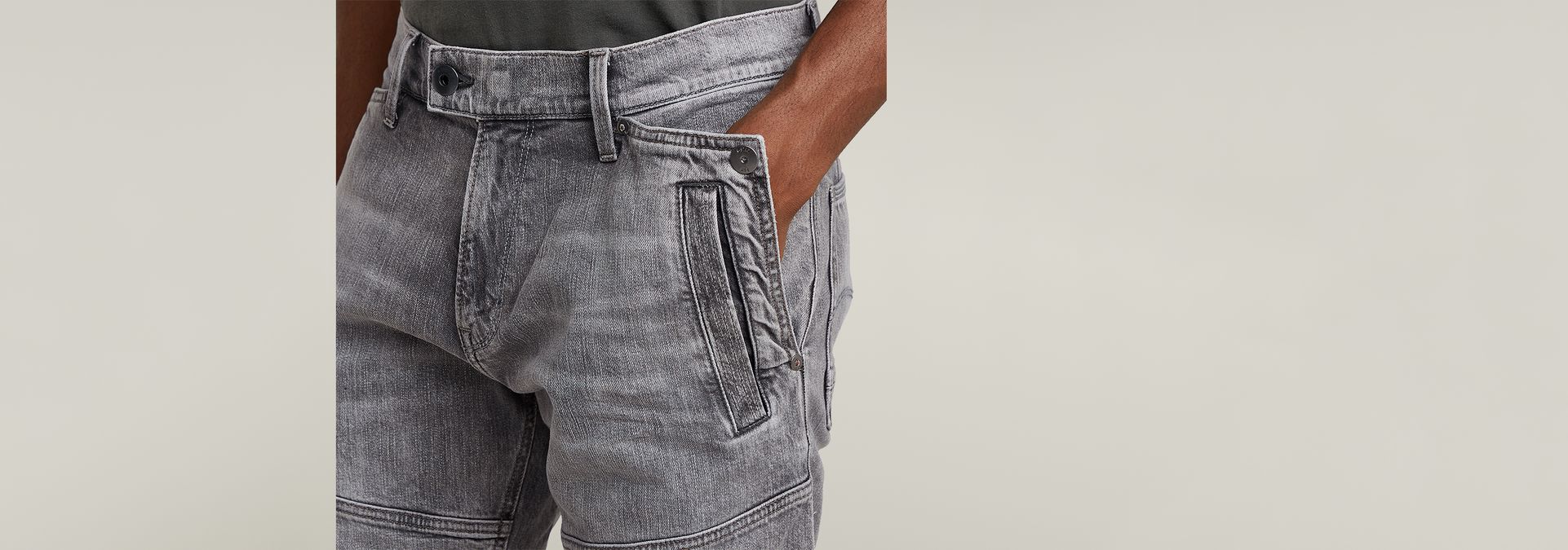 Los jeans Diver 3D tienen un corte ajustado y bolsillos delanteros con cierre de botones a presión. Los botones a presión se pueden abrir para ampliar la abertura. Justo encima, el diseño incluye unos bolsillos ribeteados con un botón a presión oculto. Las pinzas y los pliegues en las rodillas crean un efecto 3D.