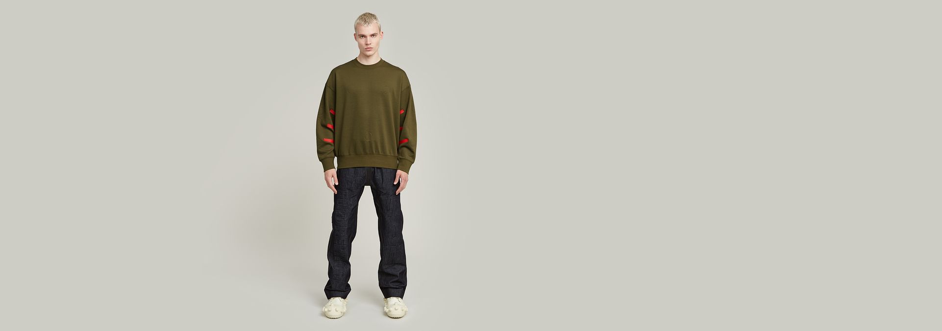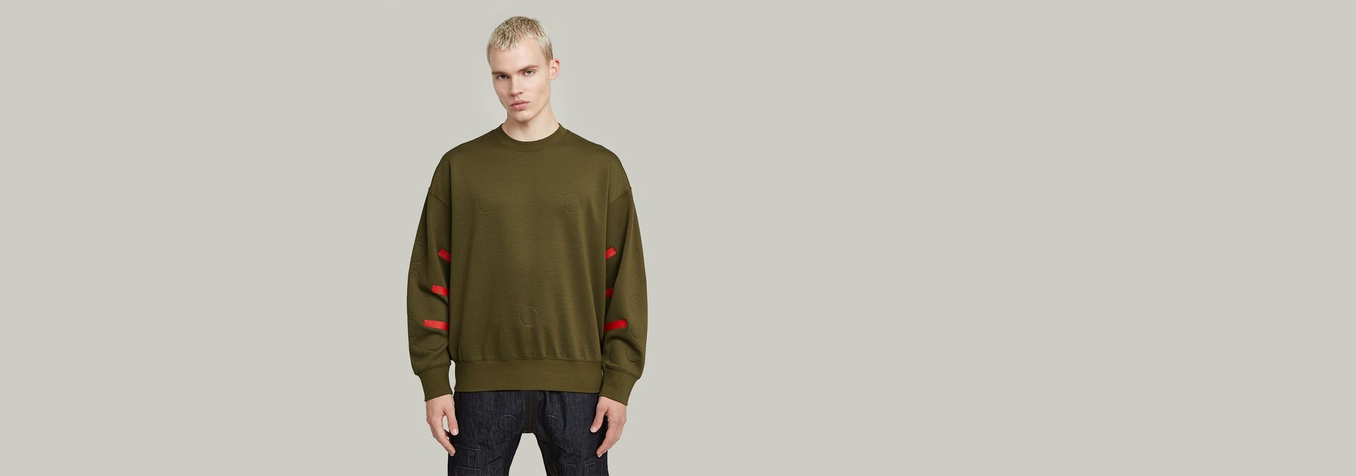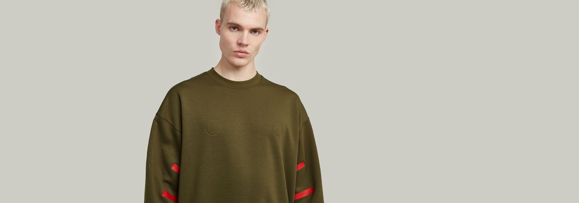 Diseñada por Walter Van Beirendonck, la sudadera unisex extragrande fue creada con costuras mínimas, experimentando con pegamento y cinta. Presenta un corte extragrande, cuello redondo y pelotas en relieve 3D en la parte delantera y en las mangas. El eslogan de Van Beirendonck "Future Proof" está impreso en la parte posterior.