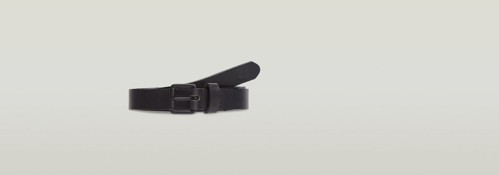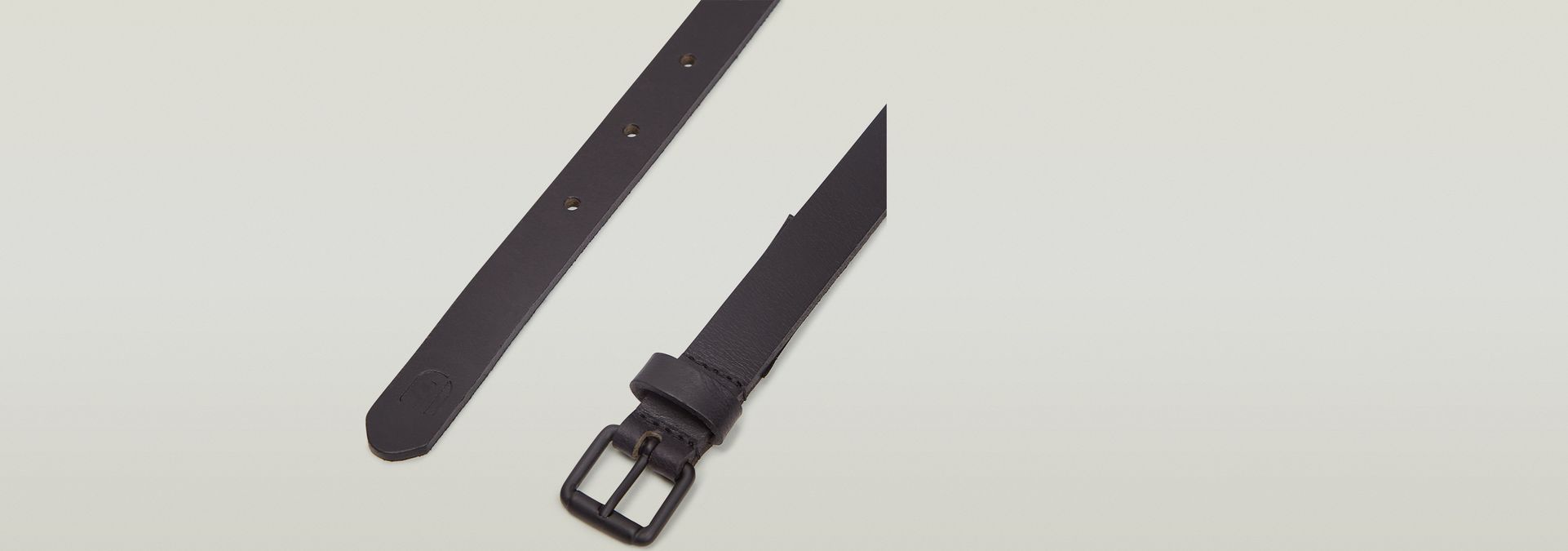 Este cinturón de piel lleva una hebilla de rodillo pintada con una sola trabilla, para mantenerlo en su lugar.