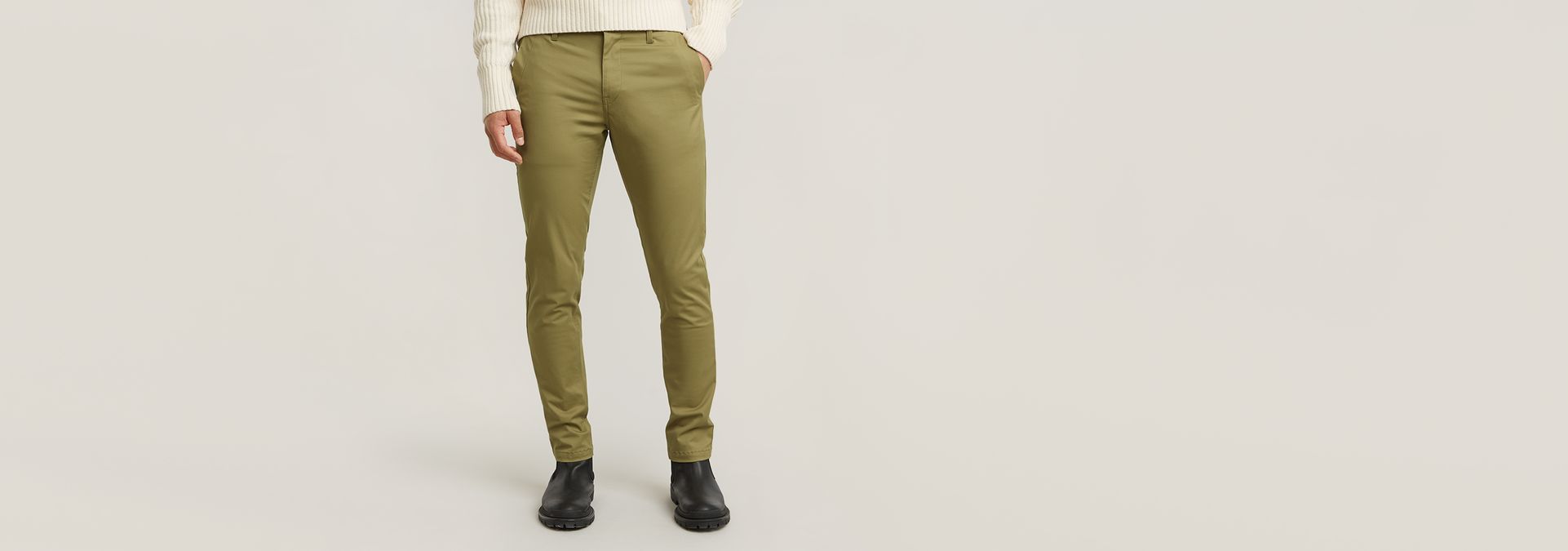 Los pantalones Slim Chino son una interpretación de G-Star RAW del chino de corte ajustado, mejorado con costuras especialmente diseñadas y alineadas con la costura lateral. El bolsillo para monedas está integrado en la costura lateral.
