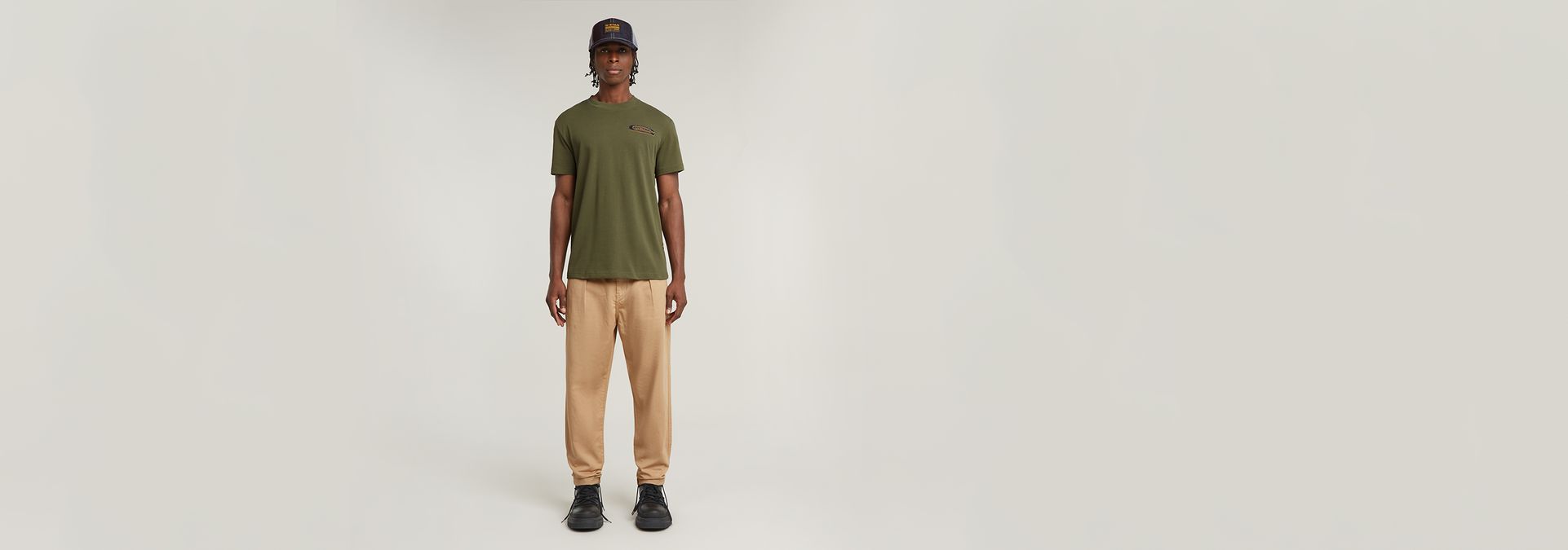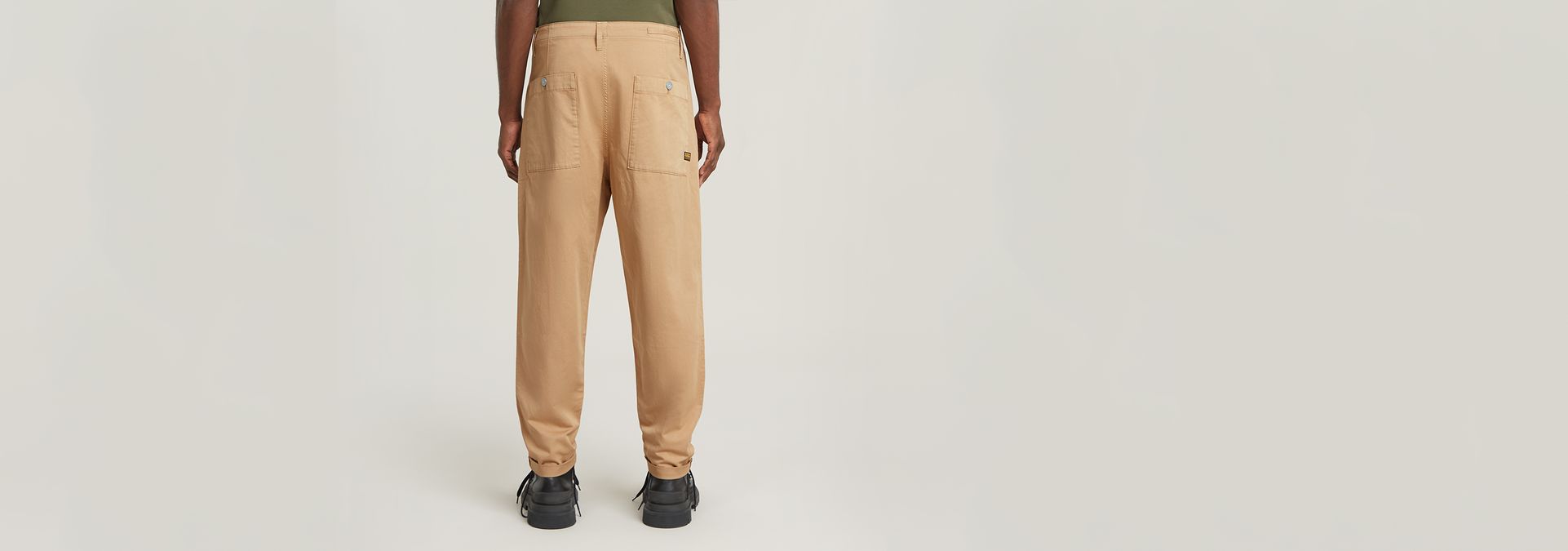 Pleated Chino Relaxed ofrece pliegues en la parte delantera para realzar el corte relajado. Incluyen un bolsillo para monedas integrado en la inserción del bolsillo. Los bolsillos traseros están rematados con un cierre de botón.