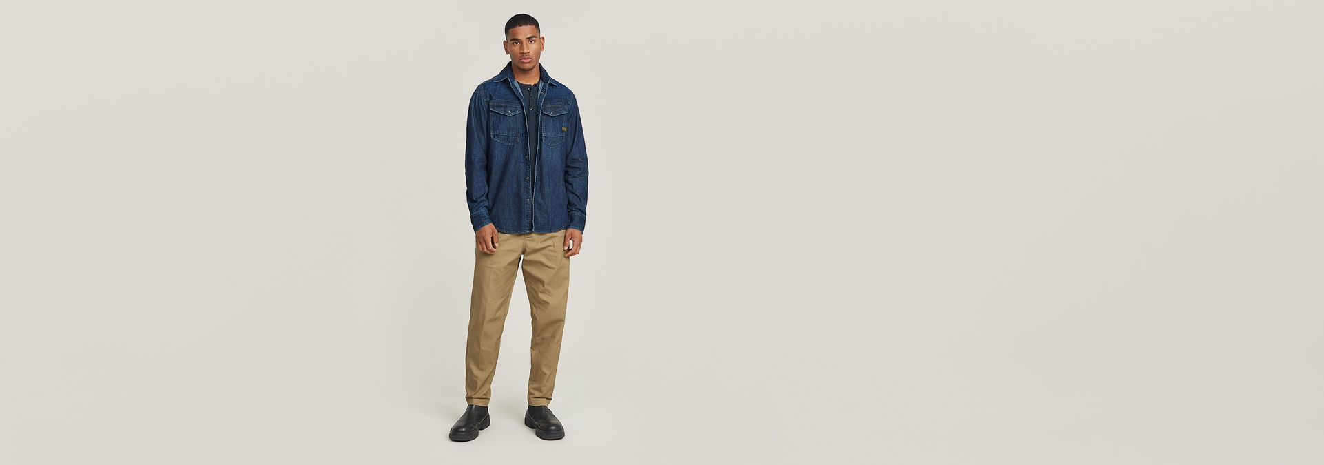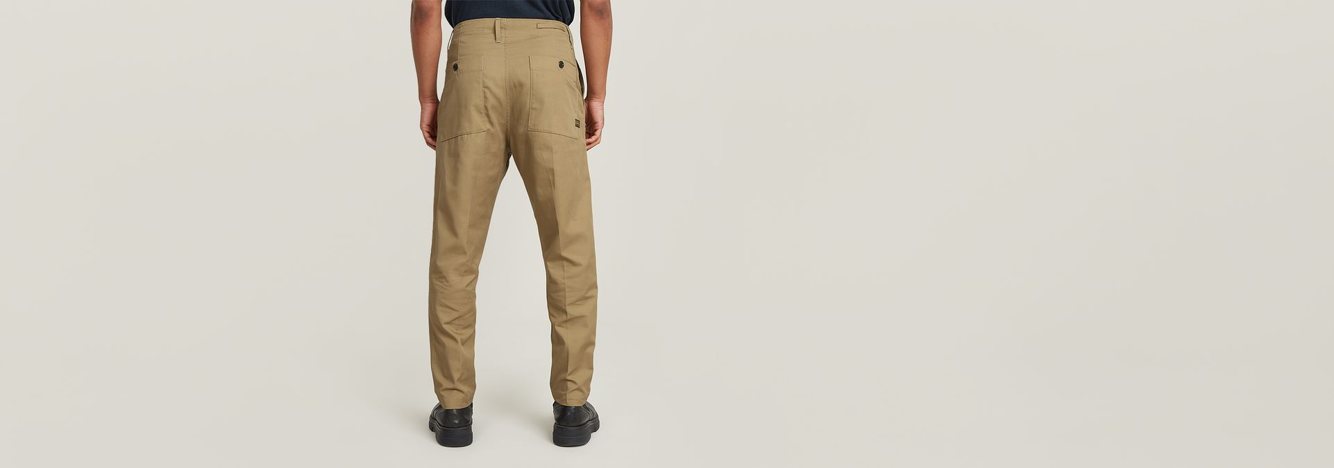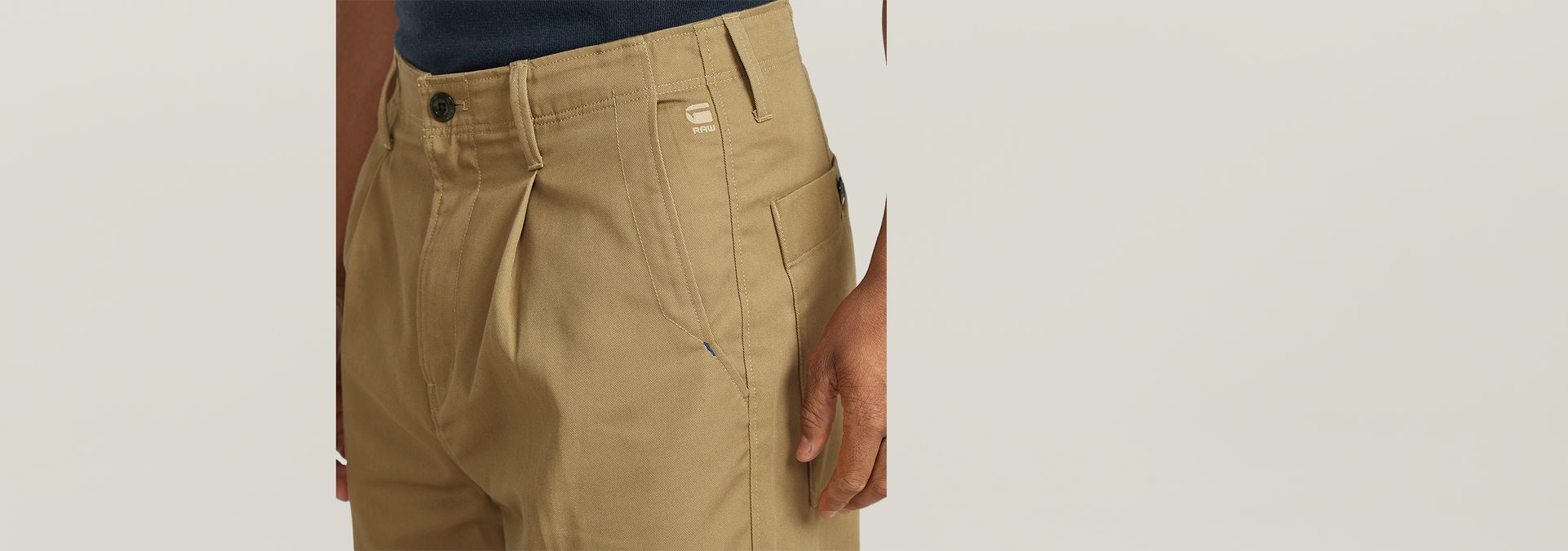Los pantalones Pleated Chino Relaxed tienen unas pinzas por la parte delantera que realzan su corte relajado. El bolsillo para monedas está integrado en el bolsillo insertado. Los bolsillos traseros están rematados con un cierre de botón.