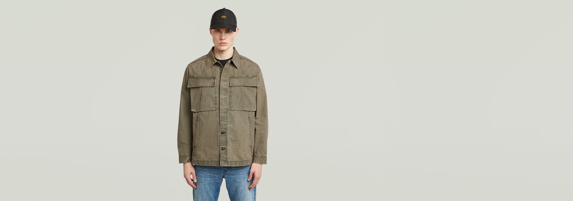 La sobrecamisa Cargo Washed luce un corte holgado con cuello de camisa clásico y bragueta con botones. Su aspecto lavado añade un encanto resistente.
