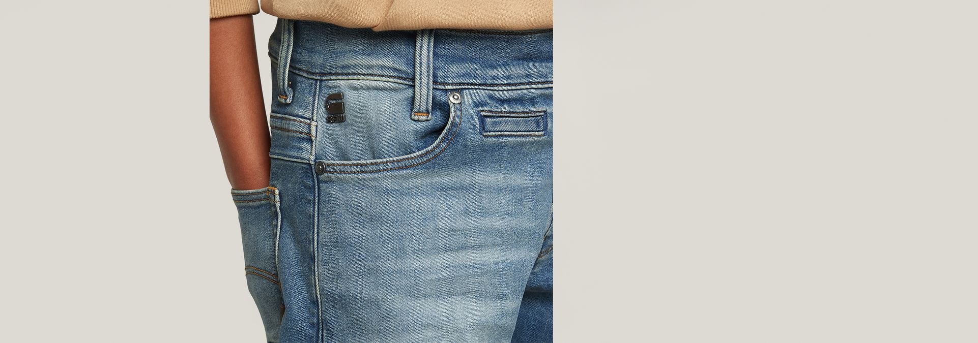 - Etiqueta trasera de G-Star RAW hecha de un tejido de papel que imita a la piel