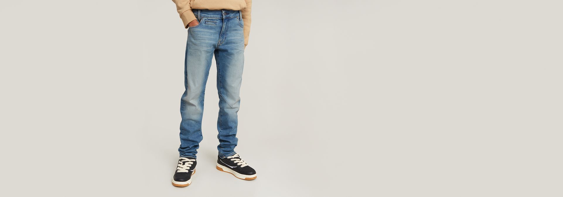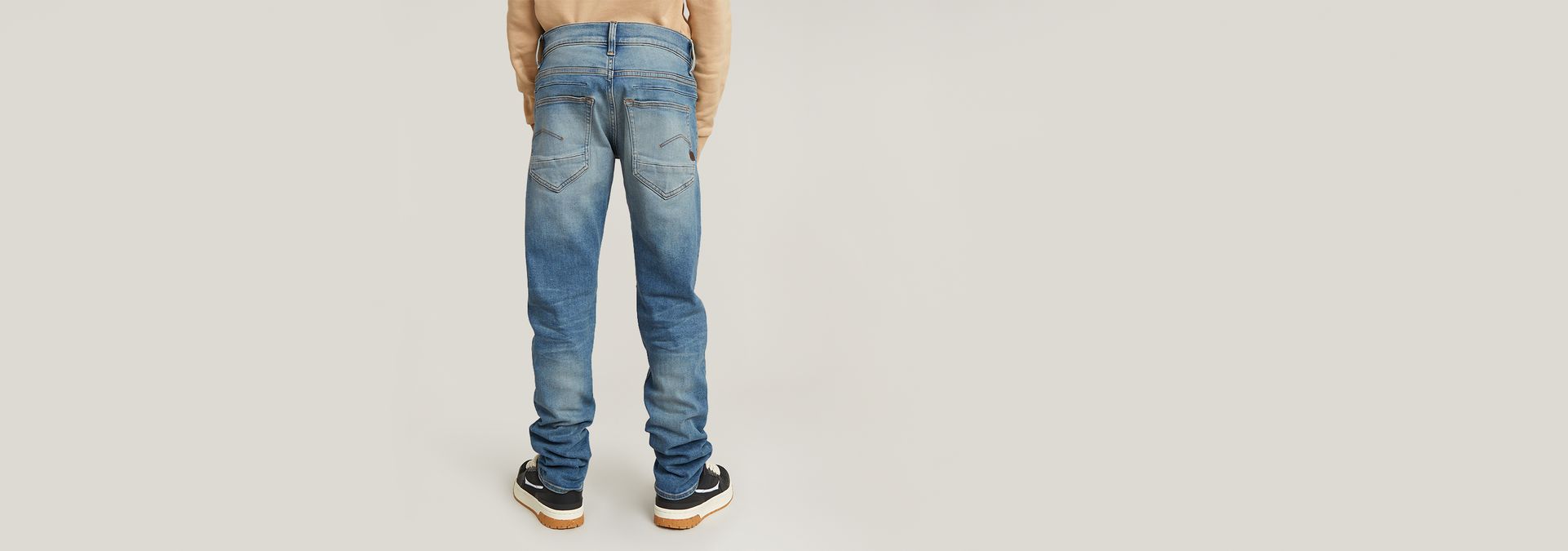 Los jeans D-Staq Slim para niños combinan la construcción de cinco bolsillos tradicional del Oeste con los detalles clásicos de los chinos. La cinturilla de este diseño permite personalizar el ajuste. El modelo incorpora en la parte trasera bolsillos profundos colocados un poco más abajo para conferirle ese toque relajado.
