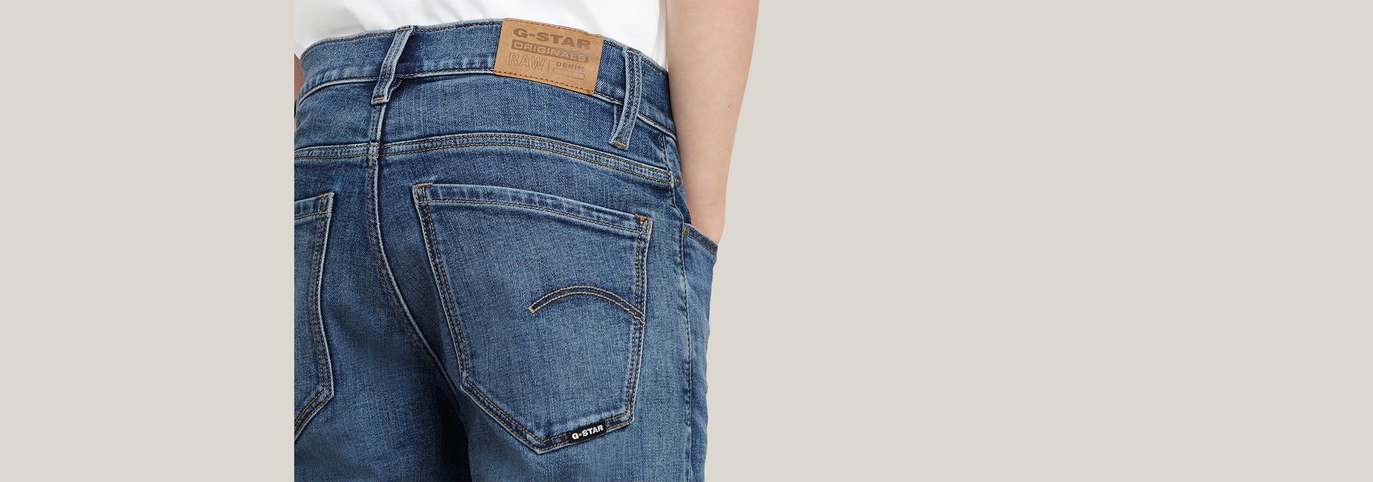 - Etiqueta trasera de G-Star RAW hecha de un tejido de papel que imita a la piel