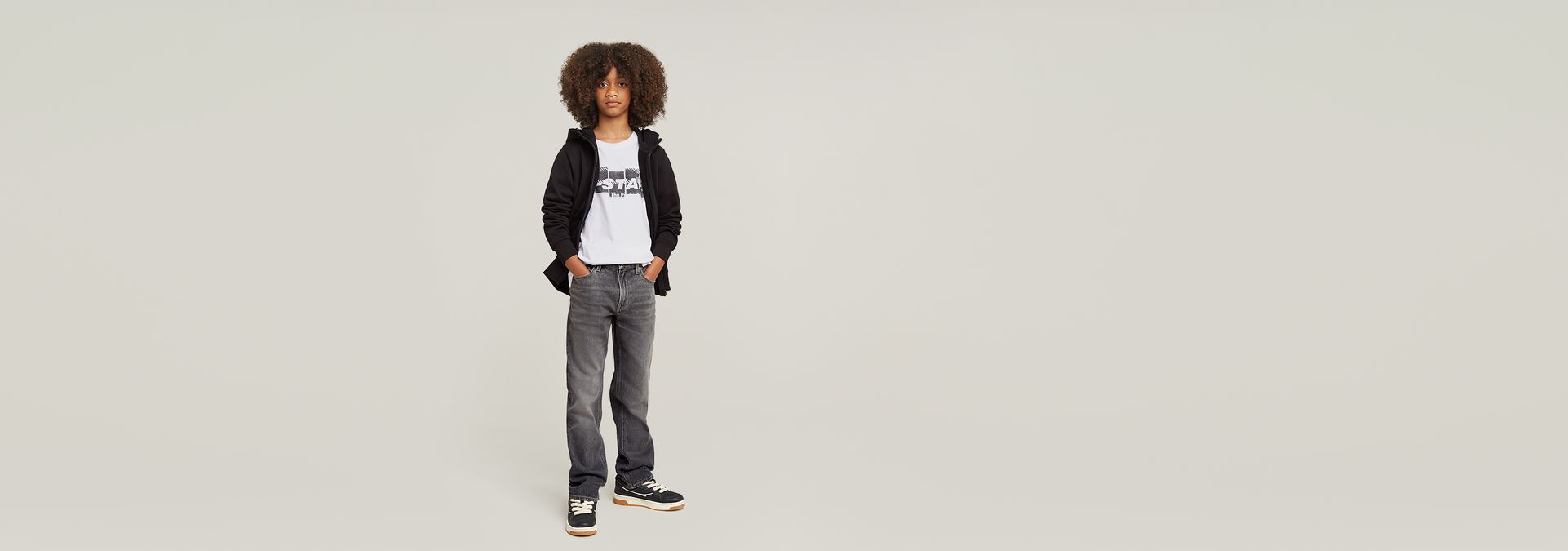El diseño de los jeans Kids Premium Mosa Straight luce un corte recto con pernera ajustada. El ancho de la cintura se puede ajustar por dentro. La prenda está elaborada en denim elástico para una comodidad máxima.