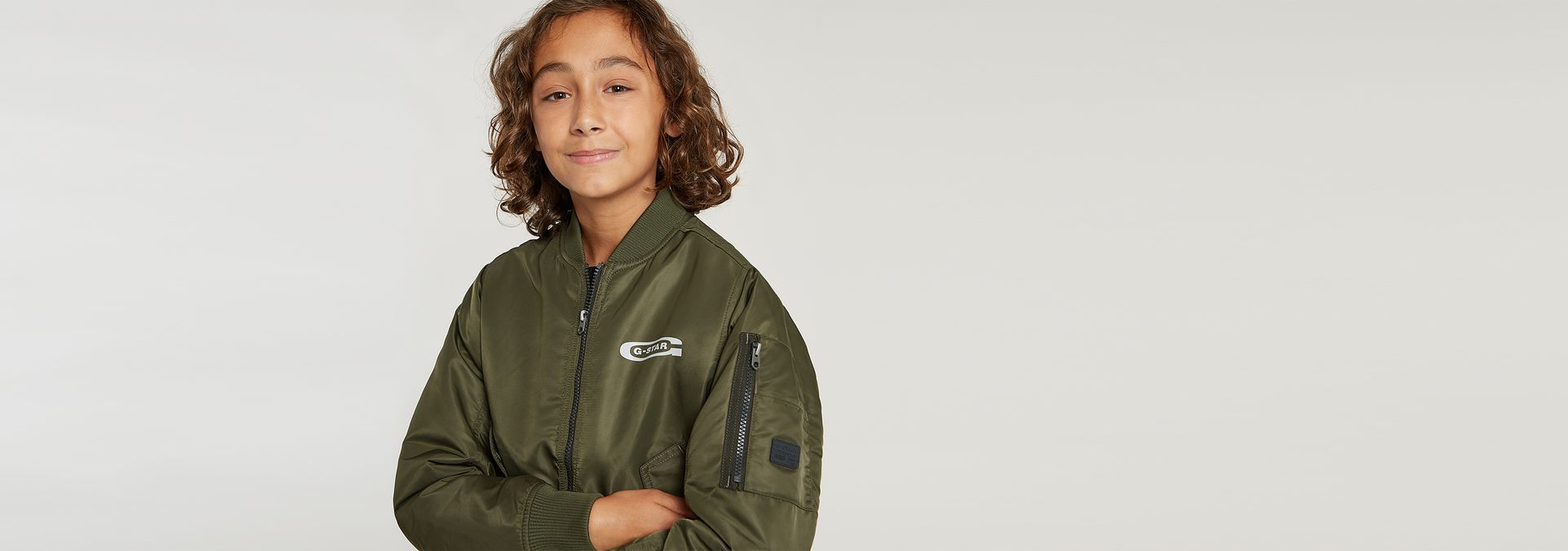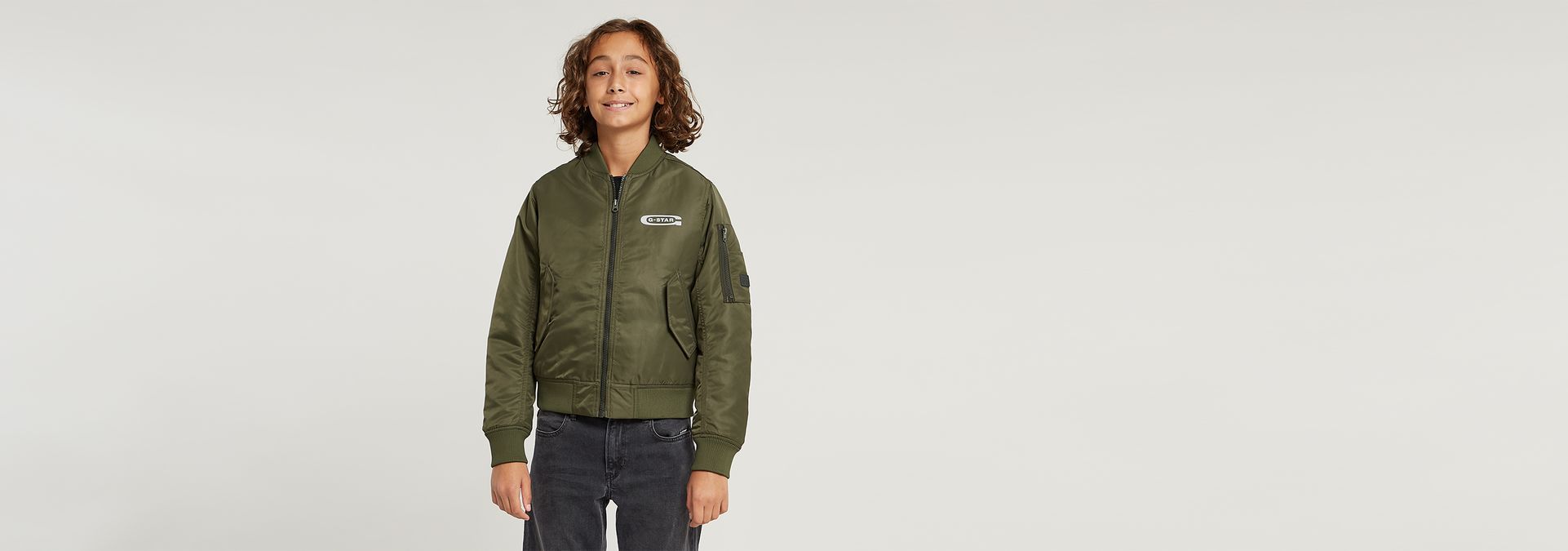La cazadora de aviador G-Star RAW para niños tiene un diseño con forro de malla y mangas ligeramente acolchadas. El cuello alzado y los bordes acanalados crean una estética auténtica. Además de los bolsillos con solapa en la cintura, la prenda lleva un bolsillo con cremallera y varios compartimentos en una manga. Tiene un bolsillo interior para mayor comodidad.