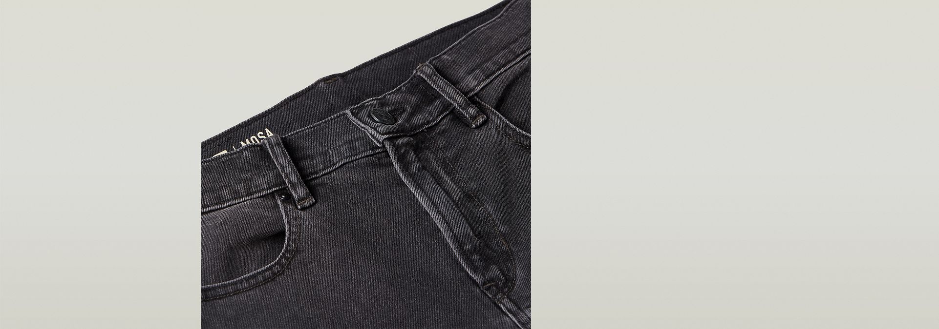 - Etiqueta de G-Star RAW en la parte trasera de la cintura, hecha de un tejido de papel que imita a la piel