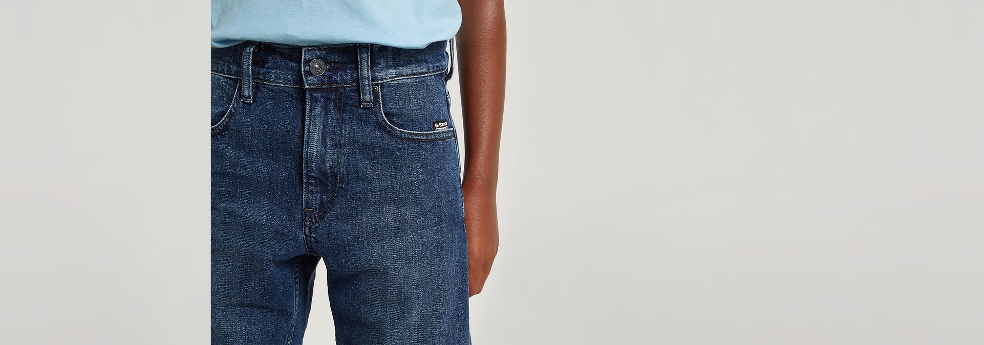 - Etiqueta de G-Star RAW en la parte trasera de la cintura, hecha de un tejido de papel que imita a la piel