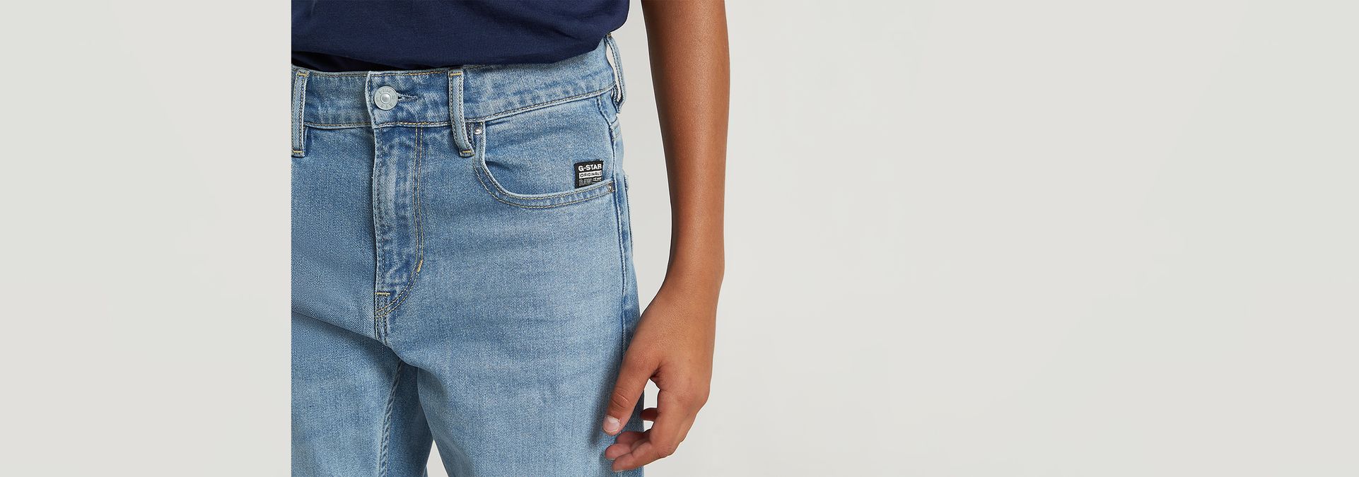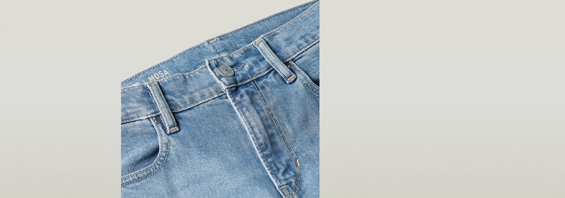 - Etiqueta de G-Star RAW en la parte trasera de la cintura, hecha de un tejido de papel que imita a la piel