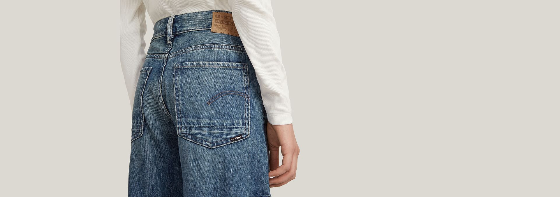 - Etiqueta trasera de G-Star RAW hecha de un tejido de papel que imita a la piel