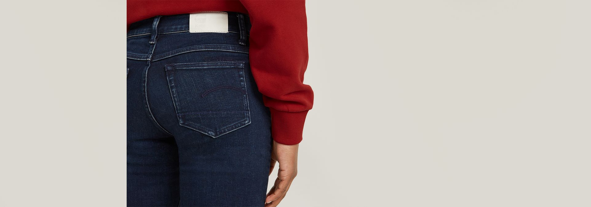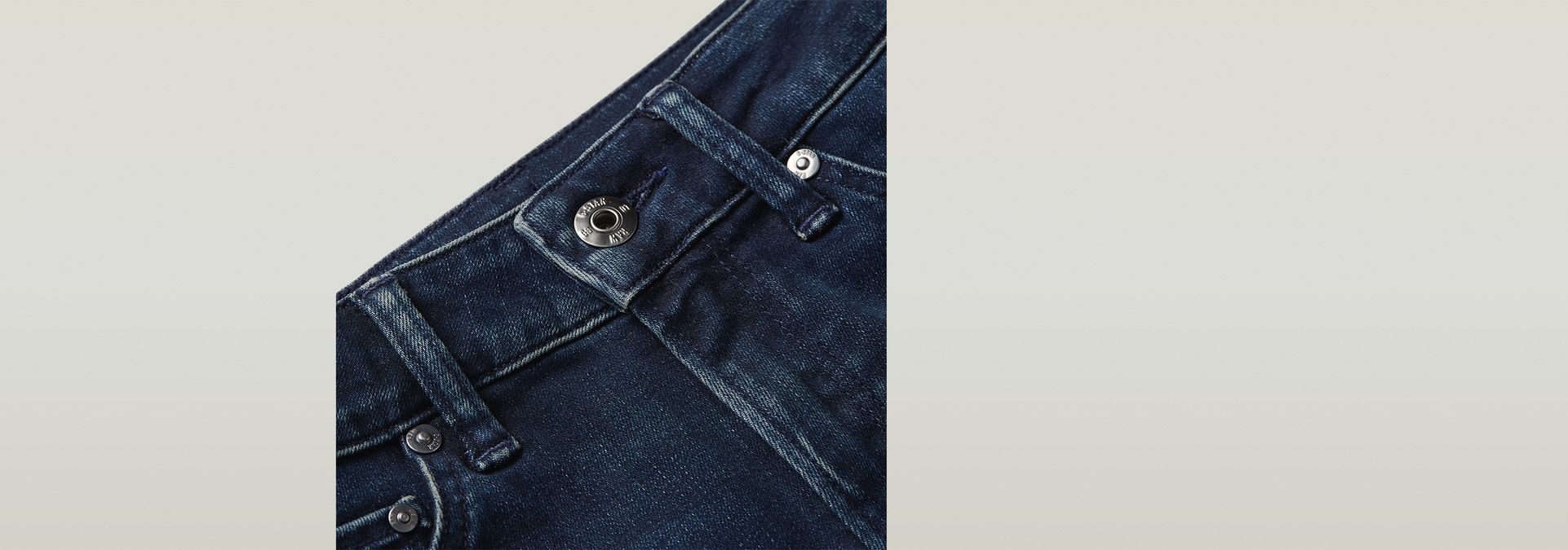 - Etiqueta de G-Star RAW en la parte trasera de la cintura, hecha de un tejido de papel que imita a la piel