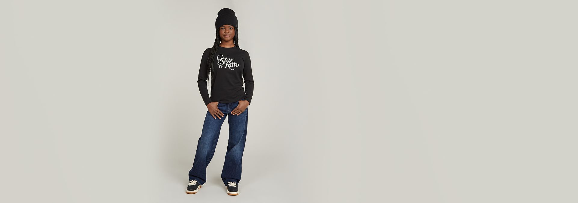 Los jeans Kids Judee tienen un corte holgado y cintura ajustable. El bolsillo para monedas está recolocado hacia el interior de la cintura y solo se ven los remaches.