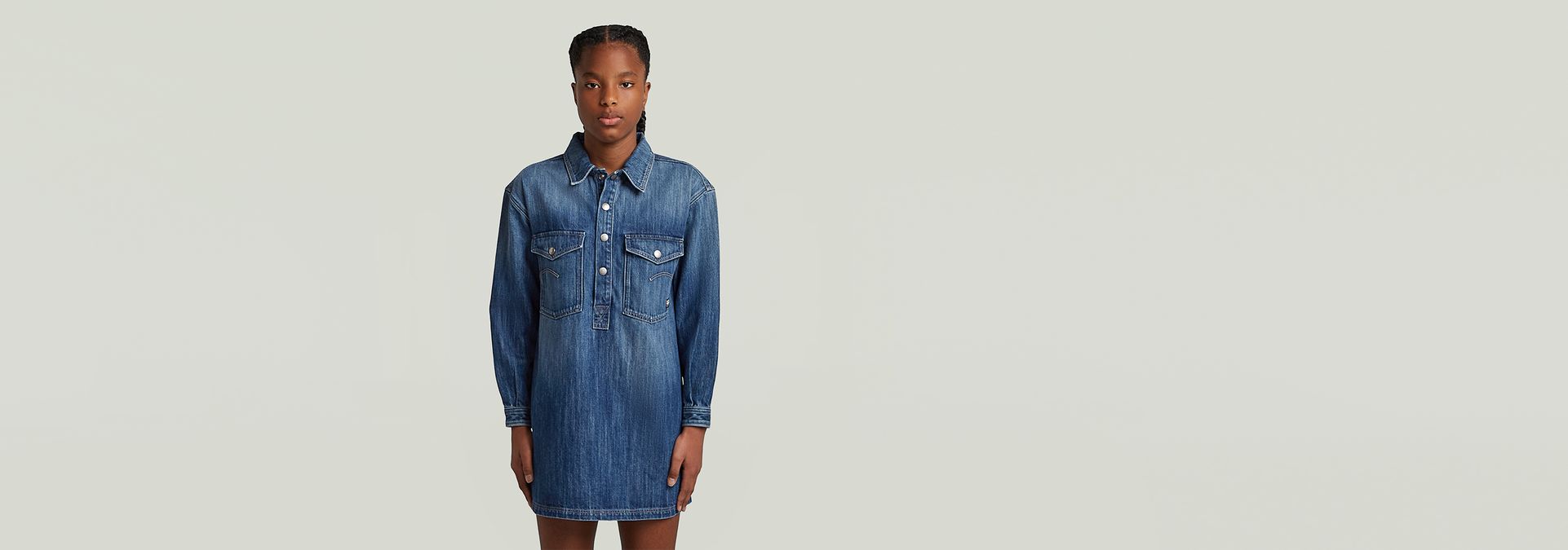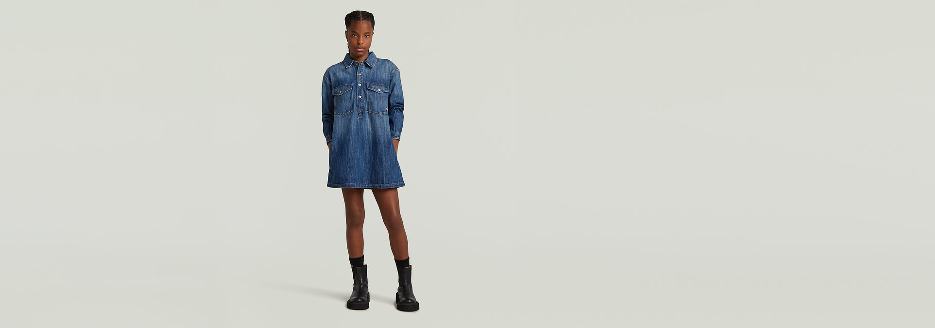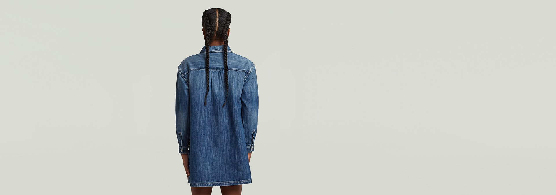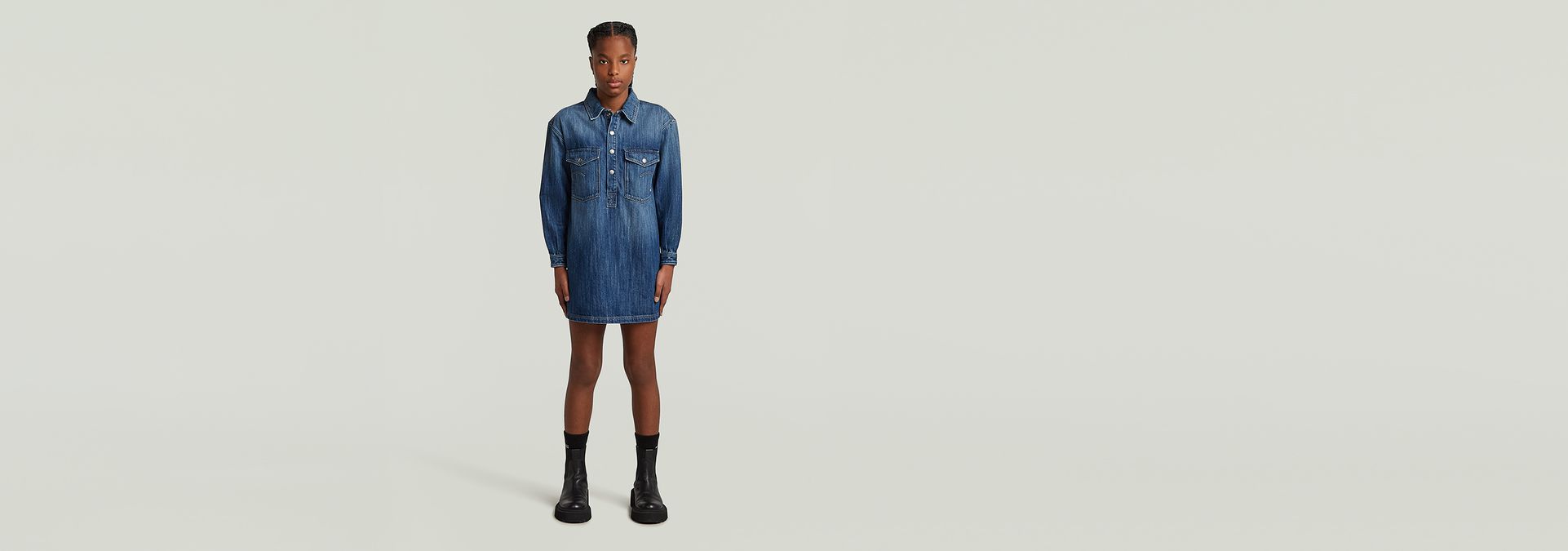 El vestido camisero Collar Long Sleeve Denim tiene un diseño de corte holgado. Presenta un cierre de botones y un cuello de camisa clásico.