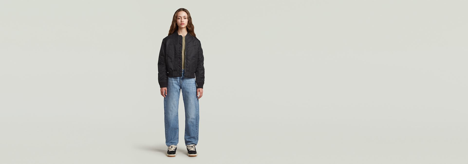 La chaqueta Bomber ofrece un ajuste extragrande con un elegante cierre de cremallera.