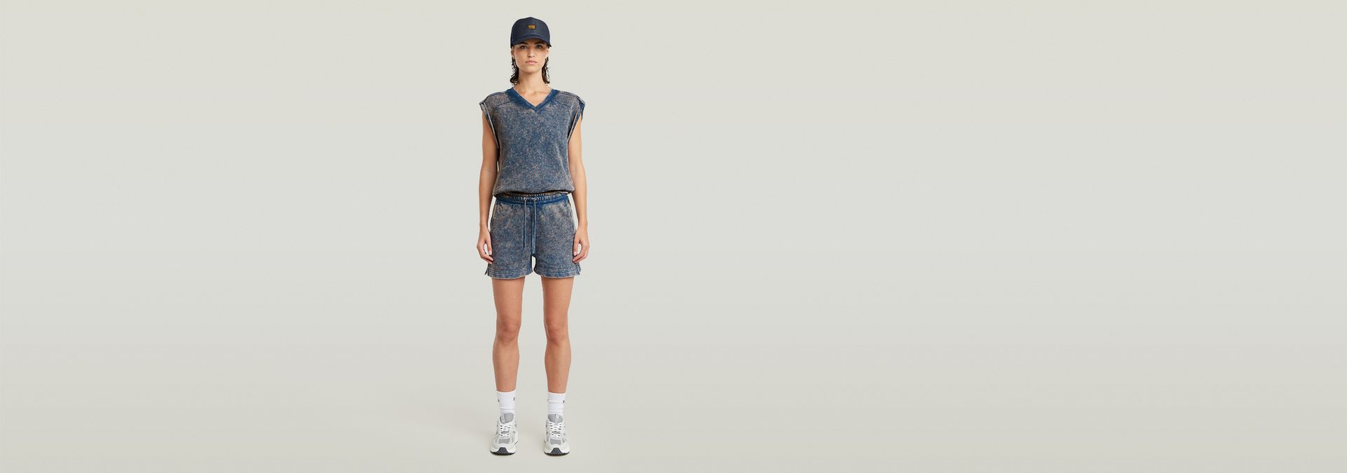 Los shorts deportivos Overdyed tienen un diseño amplio y cómodo. Este pantalón de chándal cuenta con bolsillos en las costuras laterales y aberturas en los laterales. Llevan remaches de refuerzo en las esquinas.