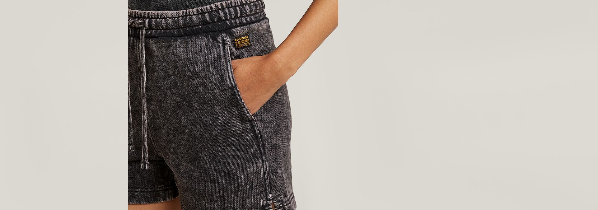 Los shorts deportivos Overdyed tienen un diseño amplio y cómodo. Este pantalón de chándal cuenta con bolsillos en las costuras laterales y aberturas en los laterales. Llevan remaches de refuerzo en las esquinas.