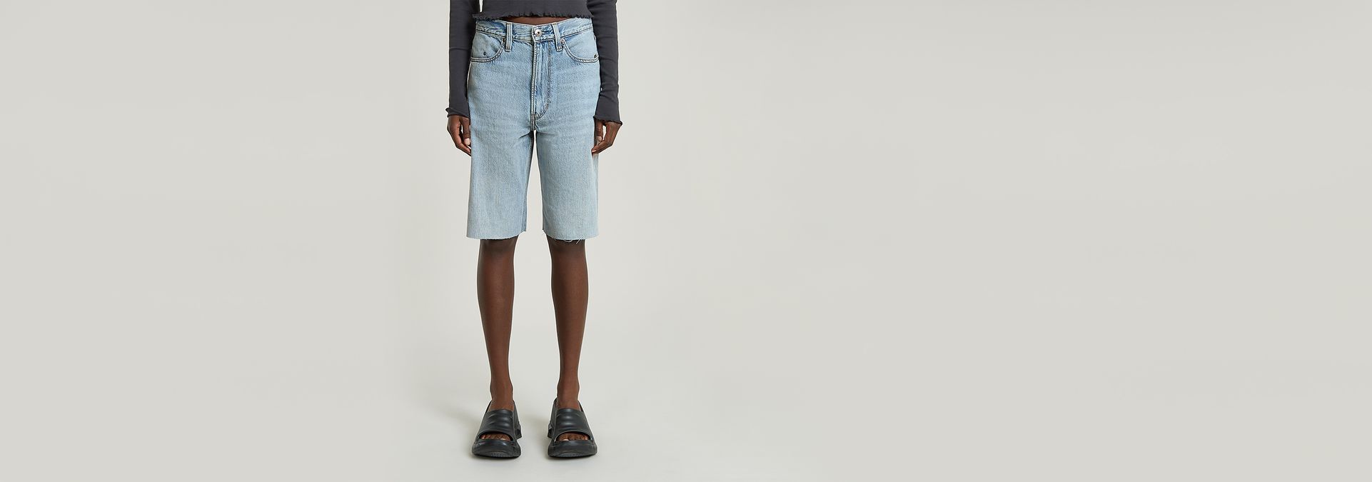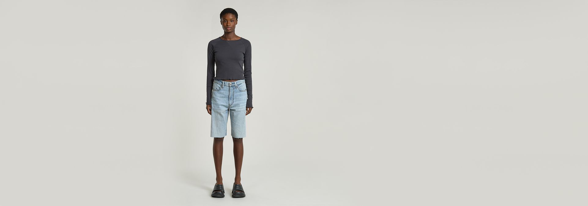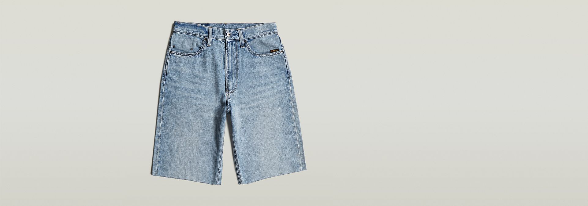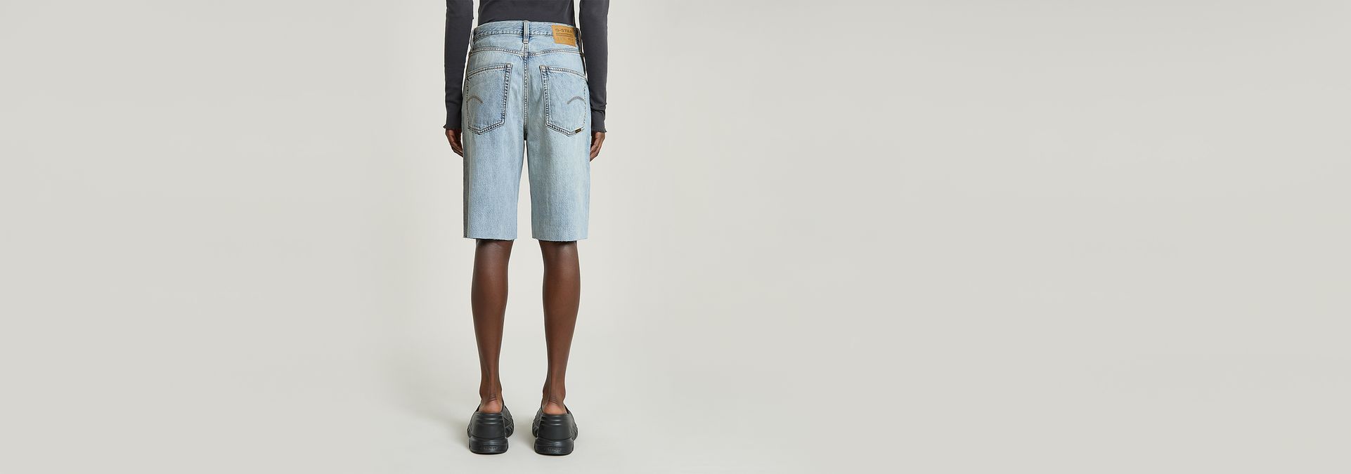 Los shorts denim Type 96 tienen un corte recto que ofrece un ajuste holgado en la cadera y en los muslos, y continúan con una pernera recta y amplia.