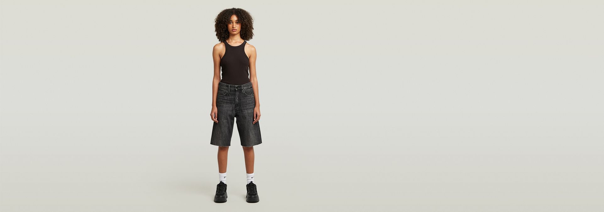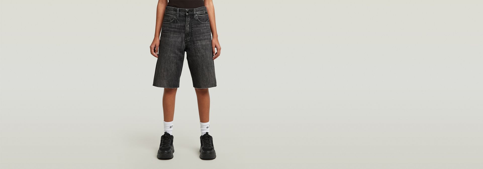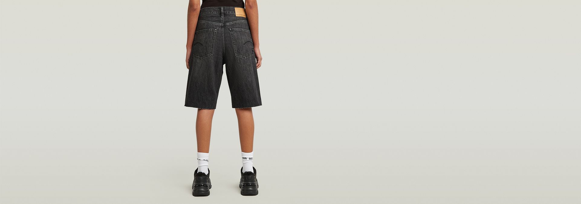 Los shorts denim Type 96 tienen un corte recto que ofrece un ajuste holgado en la cadera y en los muslos, y continúan con una pernera recta y amplia.